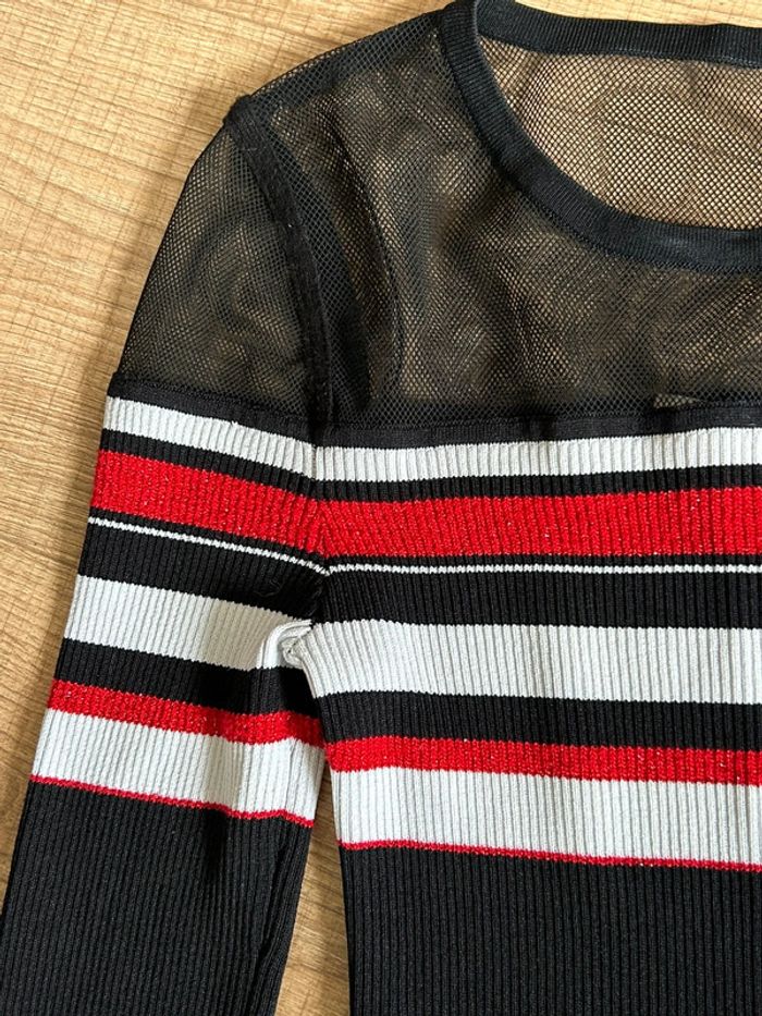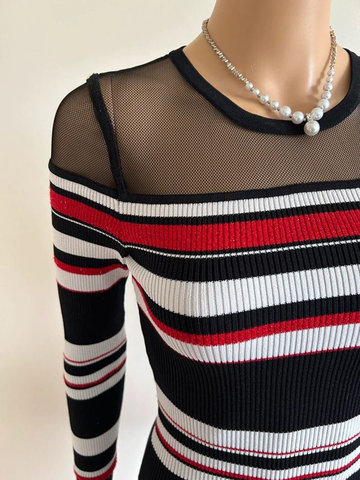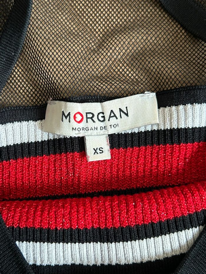 Magnifique robe pull rayée à manches longues, légèrement pailletée par endroit, de marque Morgan. Taille XS. Portée une fois, elle est comme neuve. aisselle à aisselle 29 cms à 42 cms épaule à épaule 33 cms à 37 cms longueur manches 59 cms taille 24 cms à 40 cms longueur depuis épaule 89 cms Le tissu est extensible Étiquette intérieure de composition coupée Le prix reste négociable dans la limite du raisonnable. Un petit cadeau dans le colis 🌸 (Boîte 12)