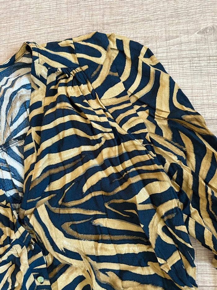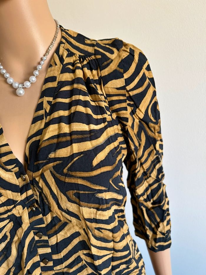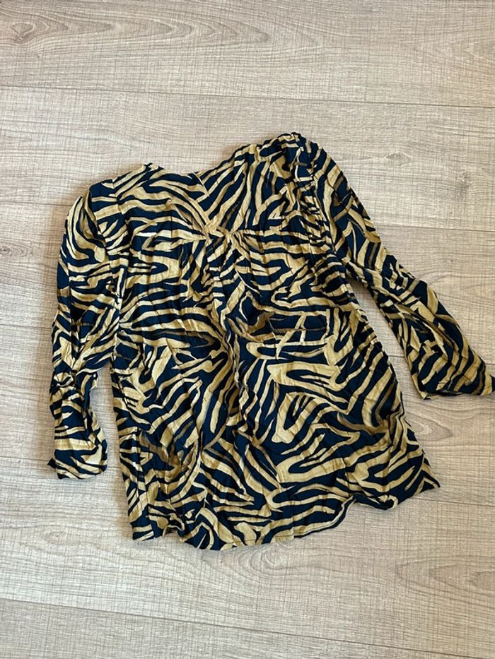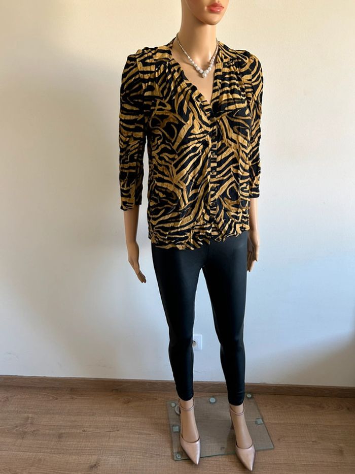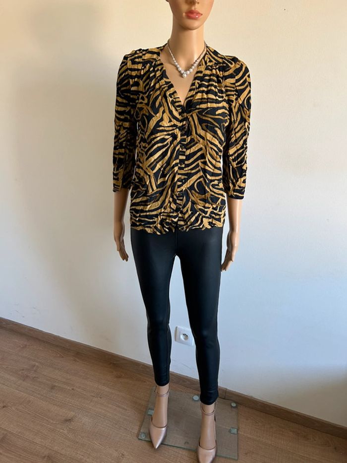 Jolie blouse imprimée beige et noire, avec manches 3/4, de marque Morgan. Taille 36. Peu portée, en très bon état. aisselle à aisselle 48 cms épaule à épaule 36 cms taille 42 cms longueur depuis épaule 59 cms Étiquette intérieure de composition coupée Le prix reste négociable dans la limite du raisonnable. Un petit cadeau dans le colis 🌸 (Boîte 51)