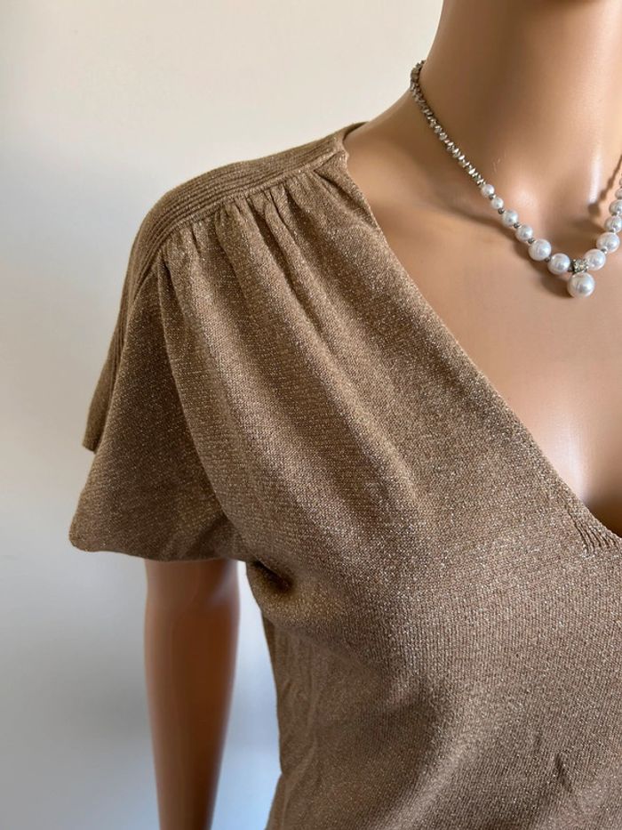 Haut doré pailleté à manches courtes Morgan taille XS excellent état - photo numéro 14