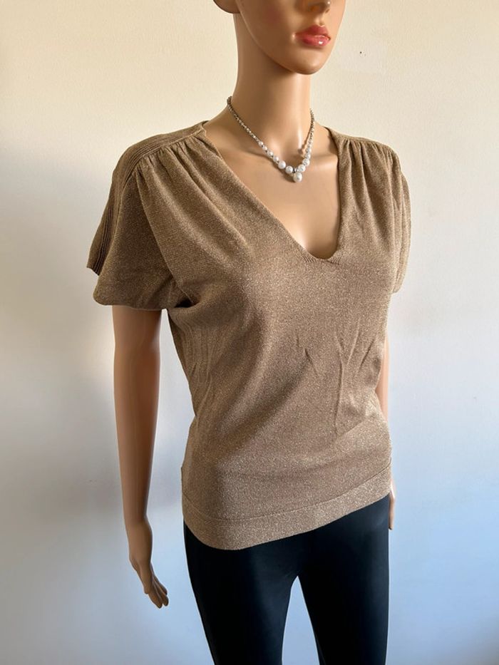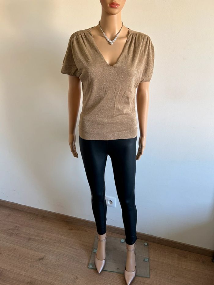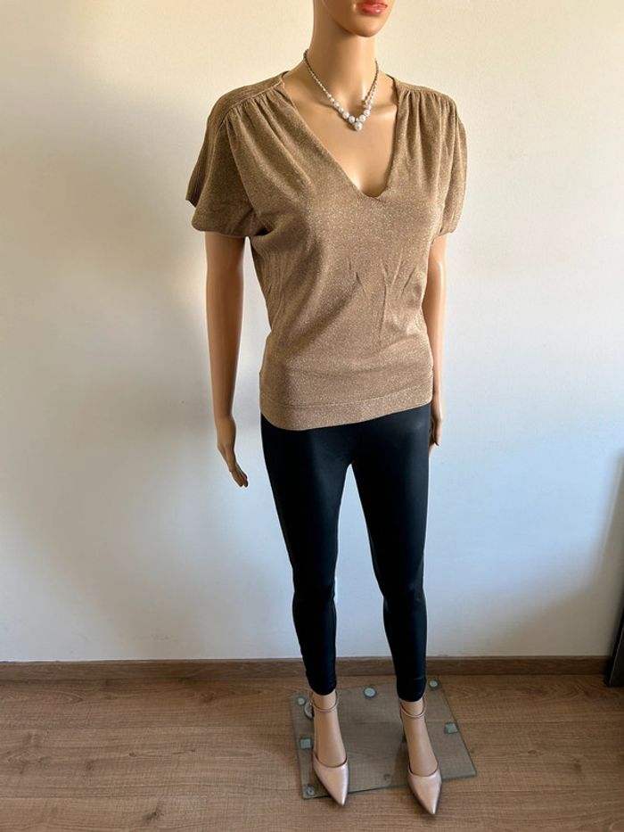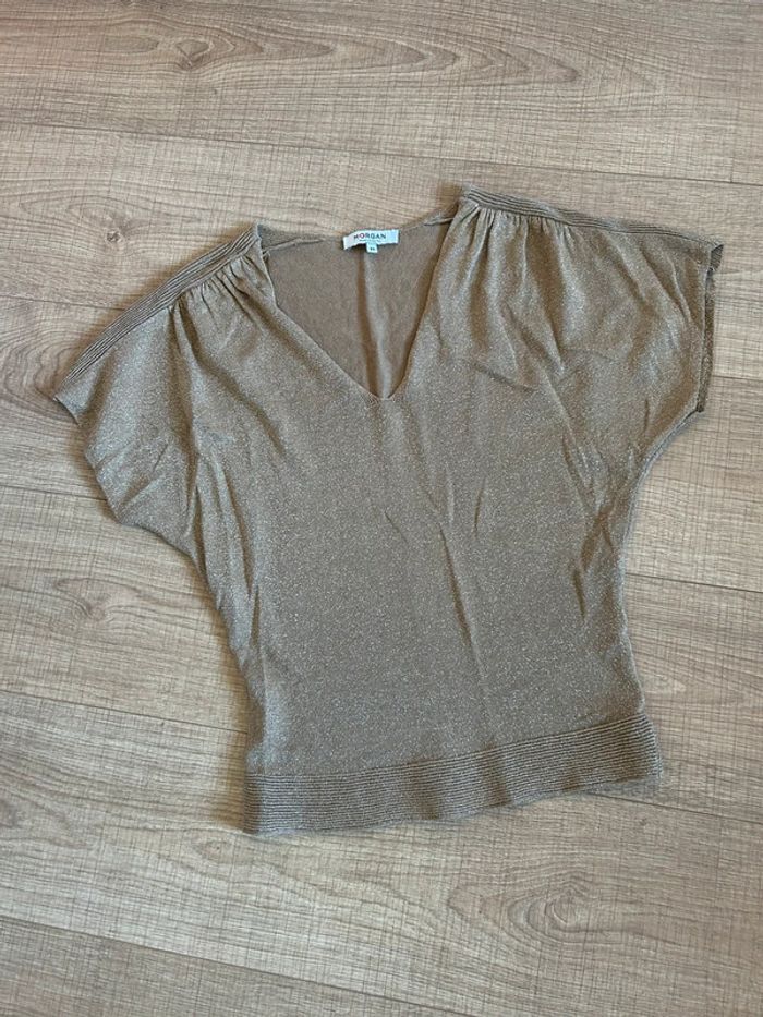 Haut doré pailleté à manches courtes Morgan taille XS excellent état - photo numéro 1