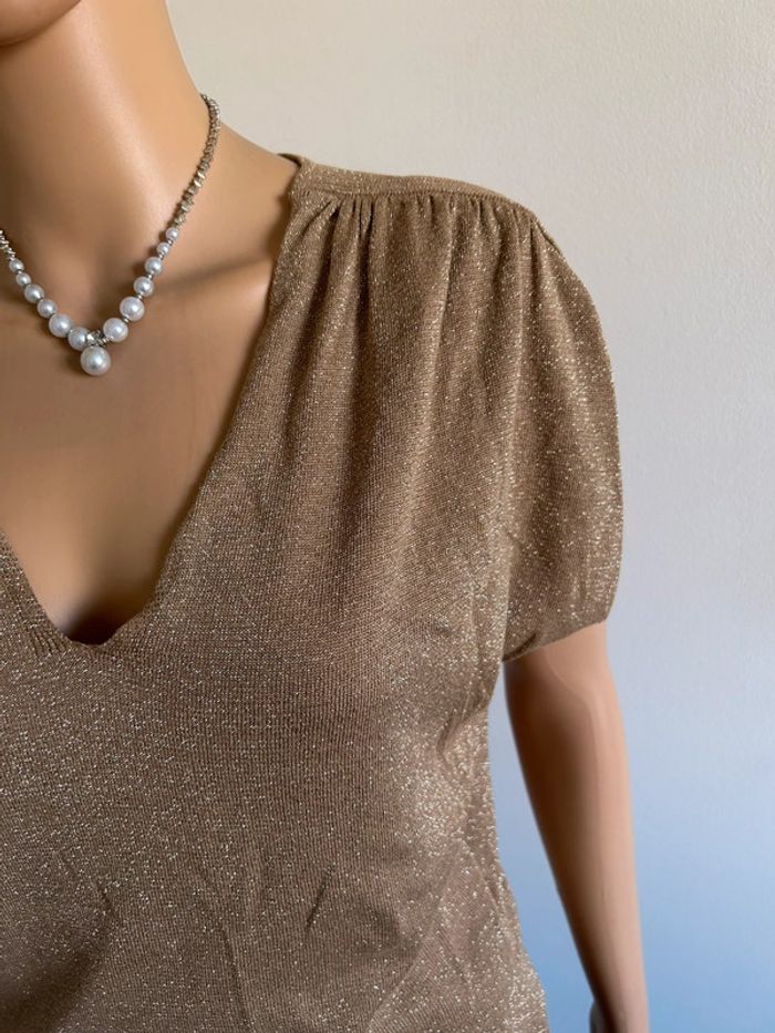 Haut doré pailleté à manches courtes Morgan taille XS excellent état - photo numéro 12