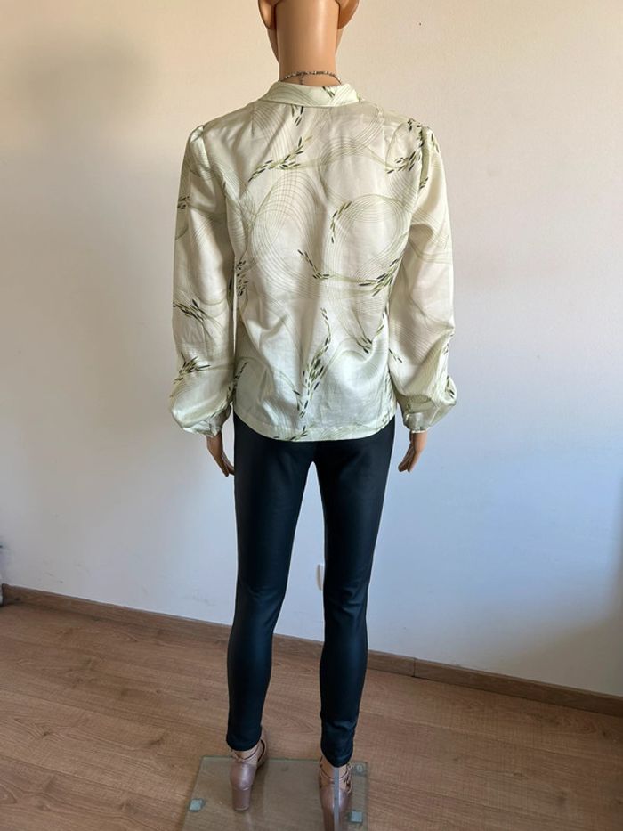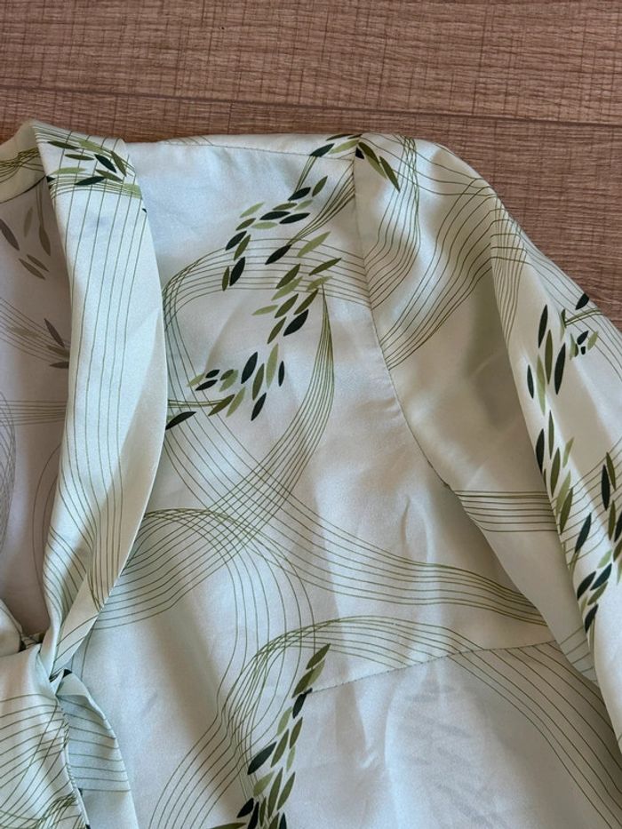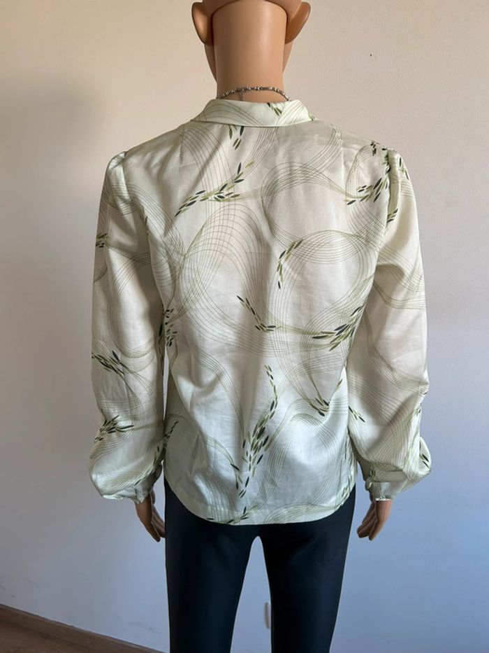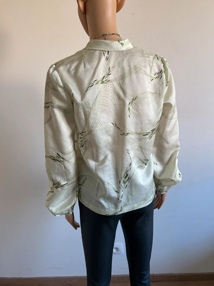Jolie blouse verte satinée à manches longues. Taille unique qui convient jusqu’au 38. Jamais portée, état neuf. aisselle à aisselle 48 cms épaule à épaule 36 cms longueur manches 59 cms taille 46 cms longueur depuis épaule 57 cms Le prix reste négociable dans la limite du raisonnable. Un petit cadeau dans le colis 🌸 (Boîte 51)