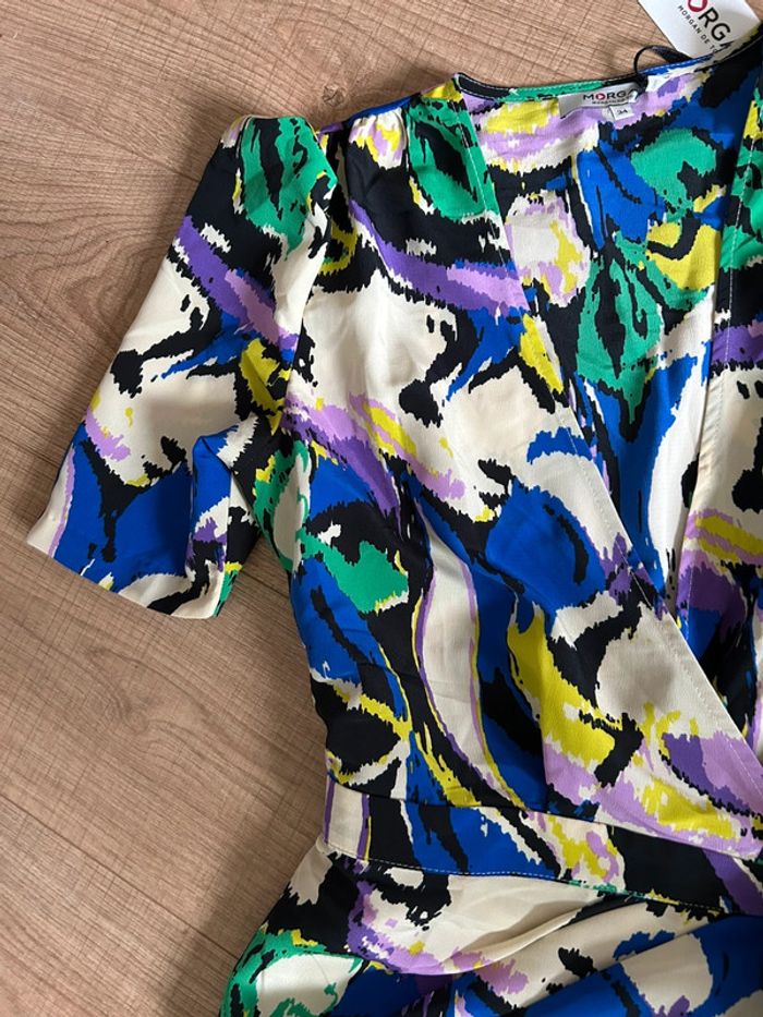 Magnifique robe imprimée portefeuille à manches courtes, de marque Morgan. Taille 34. Elle est neuve avec étiquette (valeur 80€). aisselle à aisselle 45 cms épaule à épaule 36 cms taille 34 cms longueur depuis épaule 89 cms 100% polyester Le prix reste négociable dans la limite du raisonnable. Un petit cadeau dans le colis 🌸 (Boîte 13)