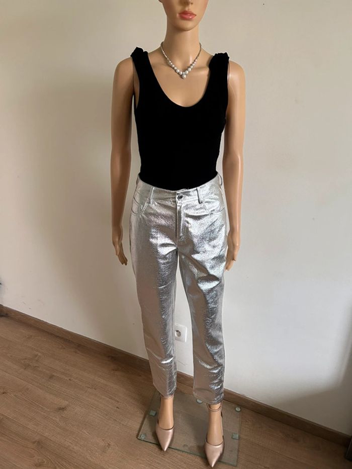 Pantalon argenté neuf Morgan taille 34 (valeur 65€) - photo numéro 4