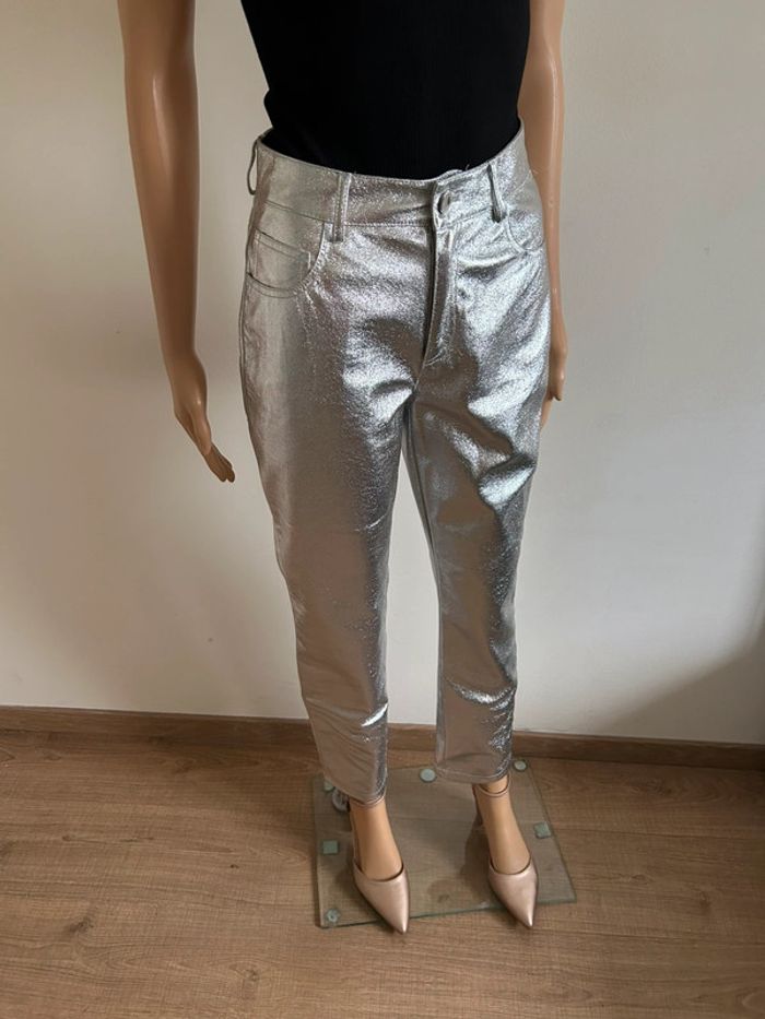 Pantalon argenté neuf Morgan taille 34 (valeur 65€) - photo numéro 2
