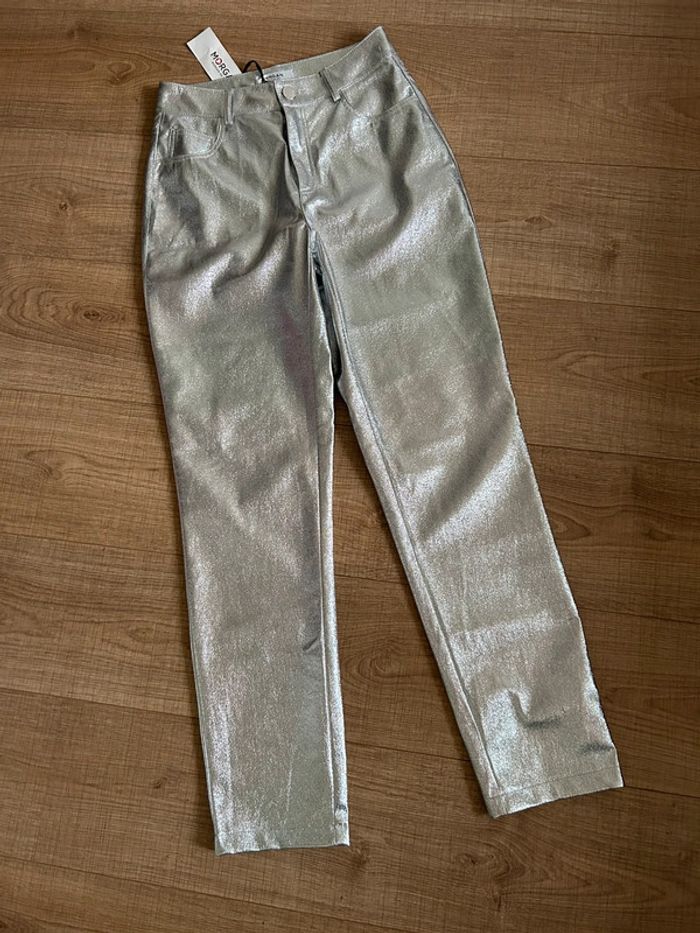 Pantalon argenté neuf Morgan taille 34 (valeur 65€) - photo numéro 1