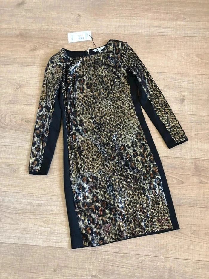 Robe imprimée léopard neuve avec sequins Jus d'Orange taille 1