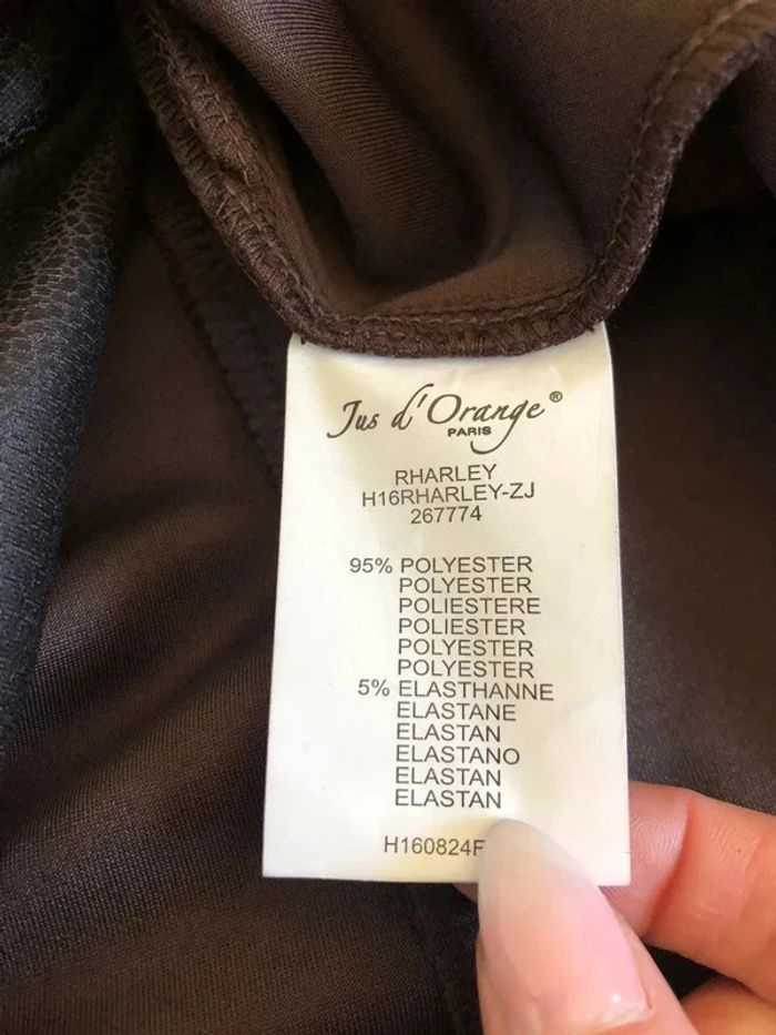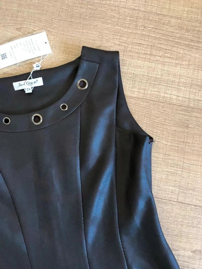 Jolie robe couleur chocolat sans manches,de marque Jus d’Orange. Effet peau de pêche. Fermeture sur le côté. Taille 4 qui correspond à du 42. Elle est neuve avec étiquette. aisselle à aisselle 49 cms et plus taille 42 cms et plus longueur depuis épaule 94 cms Le tissu est extensible 95% polyester et 5% elasthanne Le prix reste négociable dans la limite du raisonnable. Un petit cadeau dans le colis. (Boîte 22)