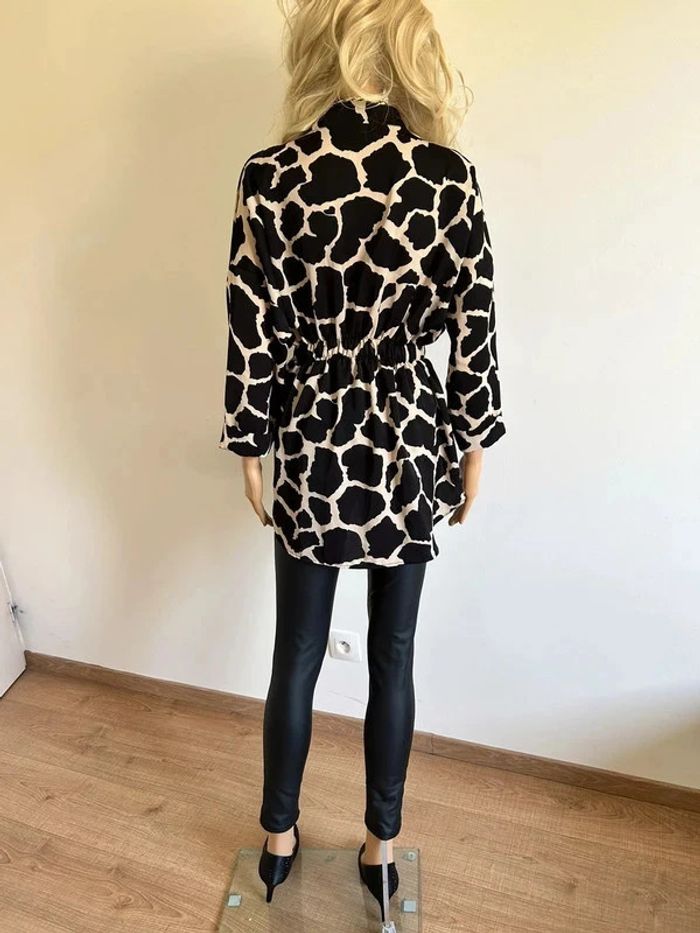 Blouse imprimée noire et beige à manches longues taille unique jamais portée - photo numéro 4