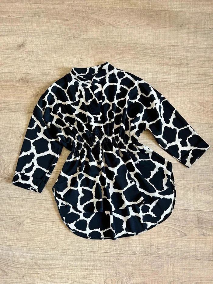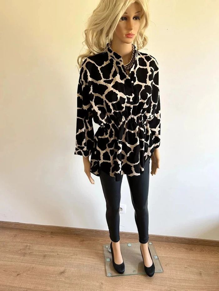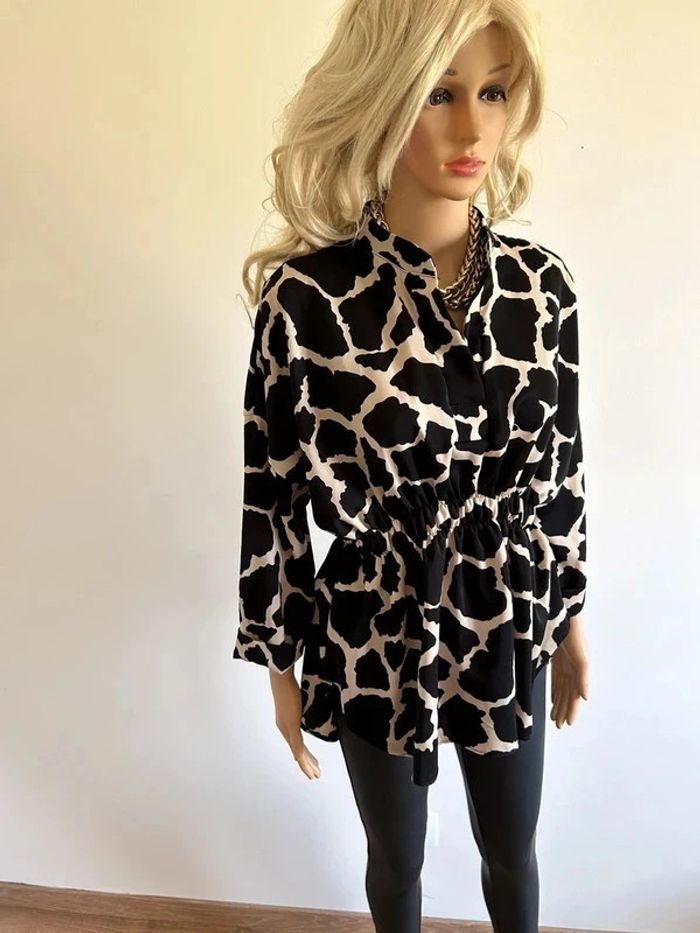 Blouse imprimée noire et beige à manches longues taille unique jamais portée - photo numéro 2