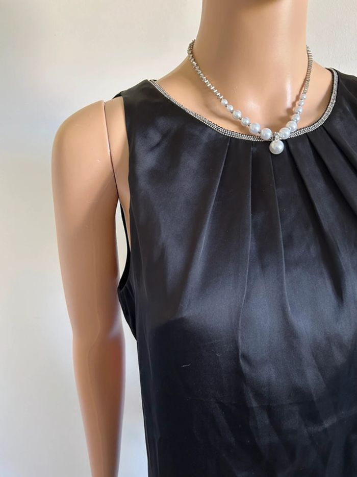 Magnifique robe noire satinée et argentée, sans manches, de marque Molly Bracken. Fermeture dans le dos. Taille M. Elle est neuve avec étiquette (valeur 59€). aisselle à aisselle 50 cms taille 51 cms longueur depuis épaule 89 cms 100% polyester Le prix reste négociable dans la limite du raisonnable. Un petit cadeau dans le colis 🌸