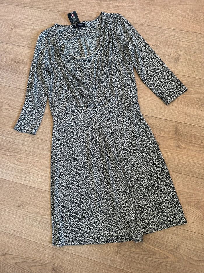 Robe imprimée noire et beige neuve Morgan taille S - photo numéro 2