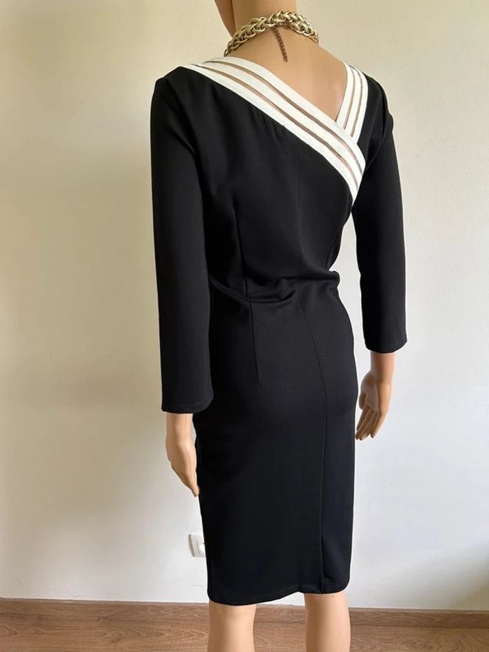 Magnifique robe noire et blanche, avec manches 3/4, de marque Morgan. Fermeture sur le côté. Taille L. Elle est neuve avec étiquette (valeur 65€). aisselle à aisselle 43 cms à 47 cms épaule à épaule 38 cms à 42 cms taille 38 cms à 43 cms longueur depuis épaule 100 cms Le tissu est extensible 68% viscose, 27% polyamide et 5% elasthanne Le prix reste négociable dans la limite du raisonnable. Un petit cadeau dans le colis 🌸