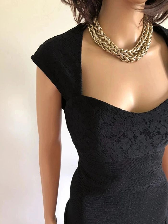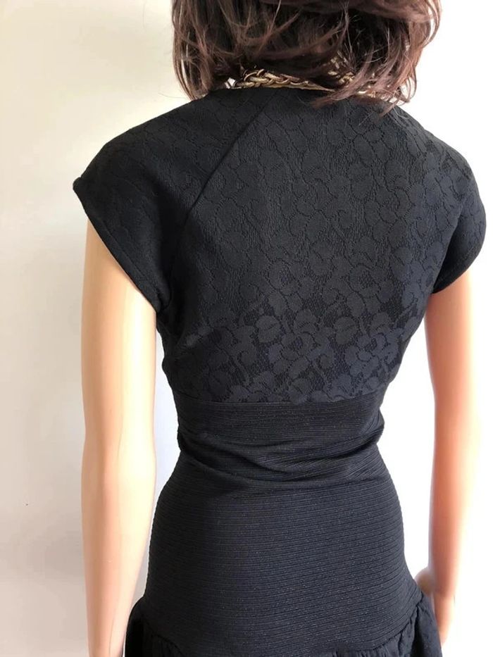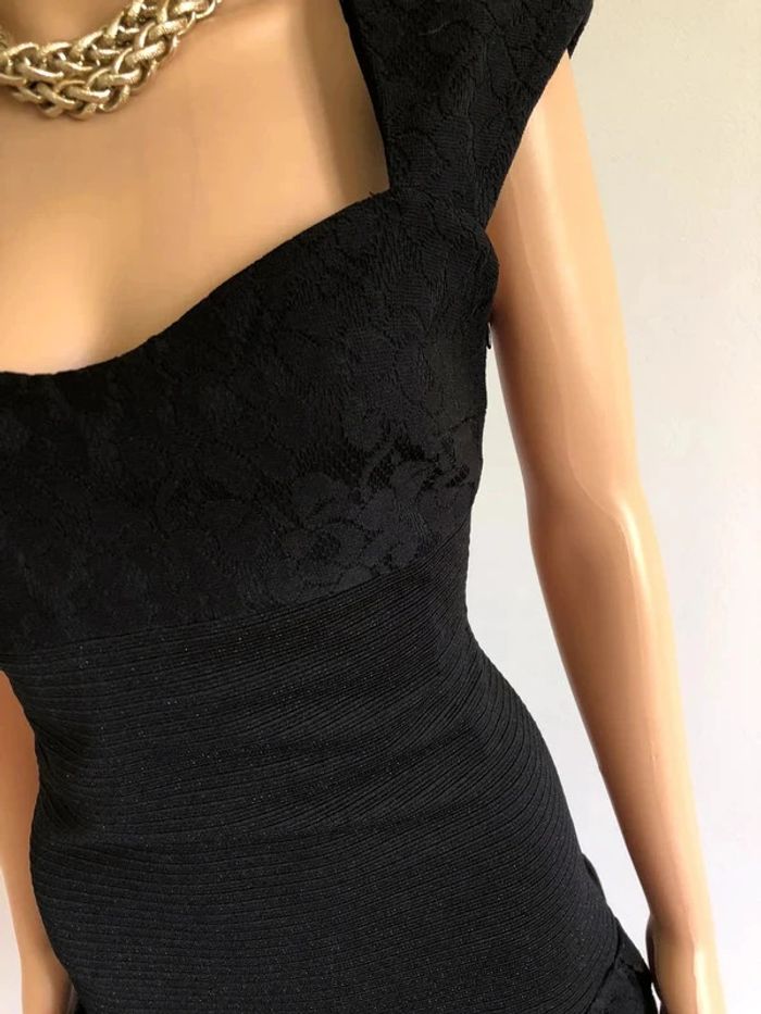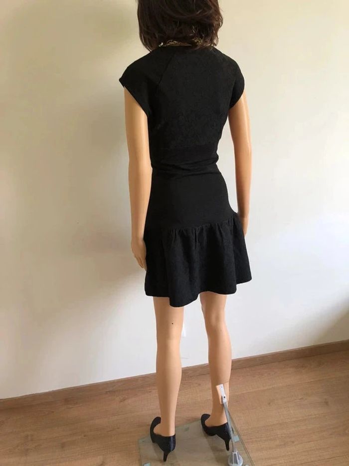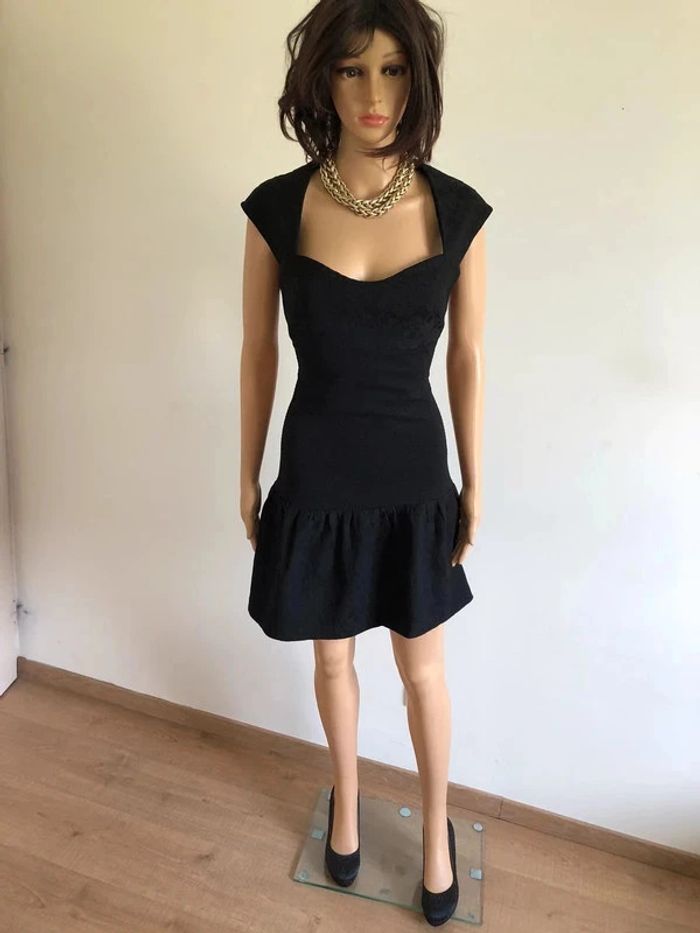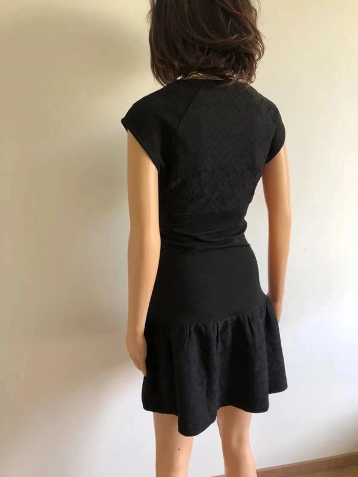 Jolie robe noire bi matière à manches courtes, avec empiècements en dentelle, de marque Morgan. Fermeture sur le côté. Taille L. Elle est neuve avec étiquette (valeur 70€). aisselle à aisselle 46 cms taille 39 cms longueur depuis épaule 86 cms 87% polyester, 11% viscose et 2% elasthanne Le prix reste négociable dans la limite du raisonnable. Un petit cadeau dans le colis. (Boîte 48)