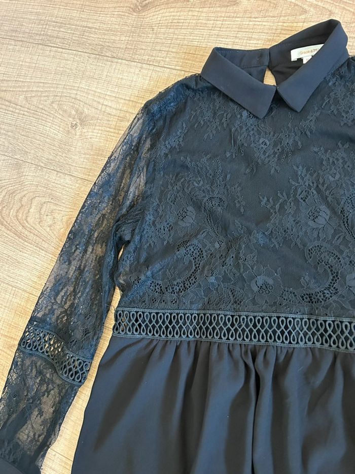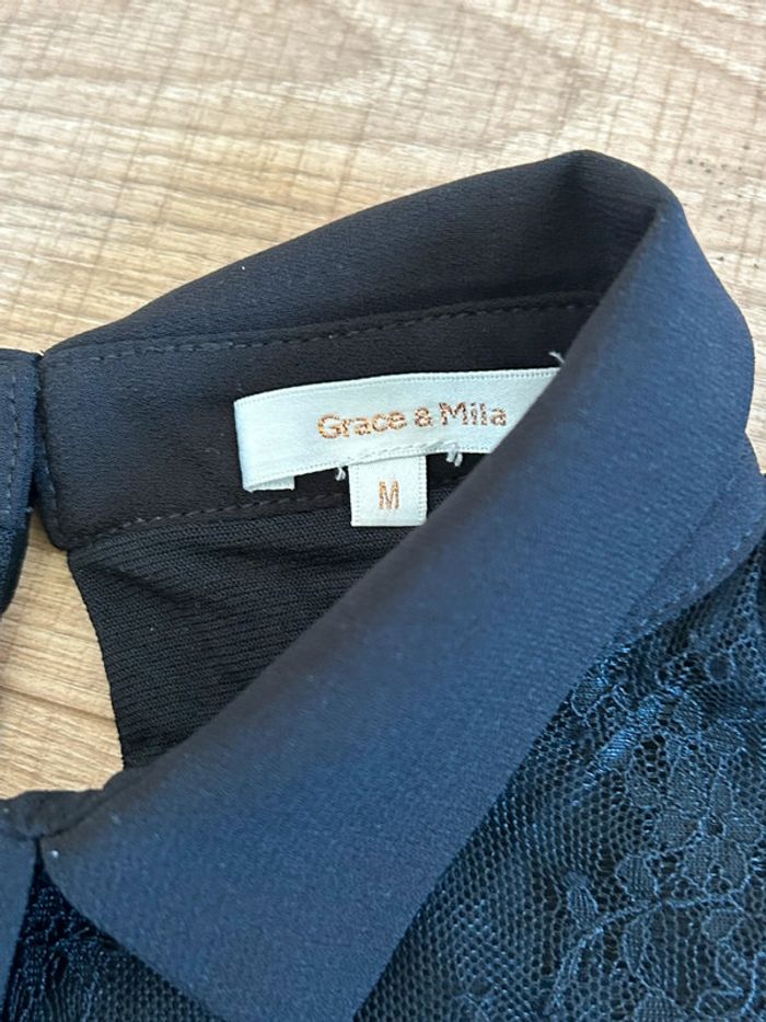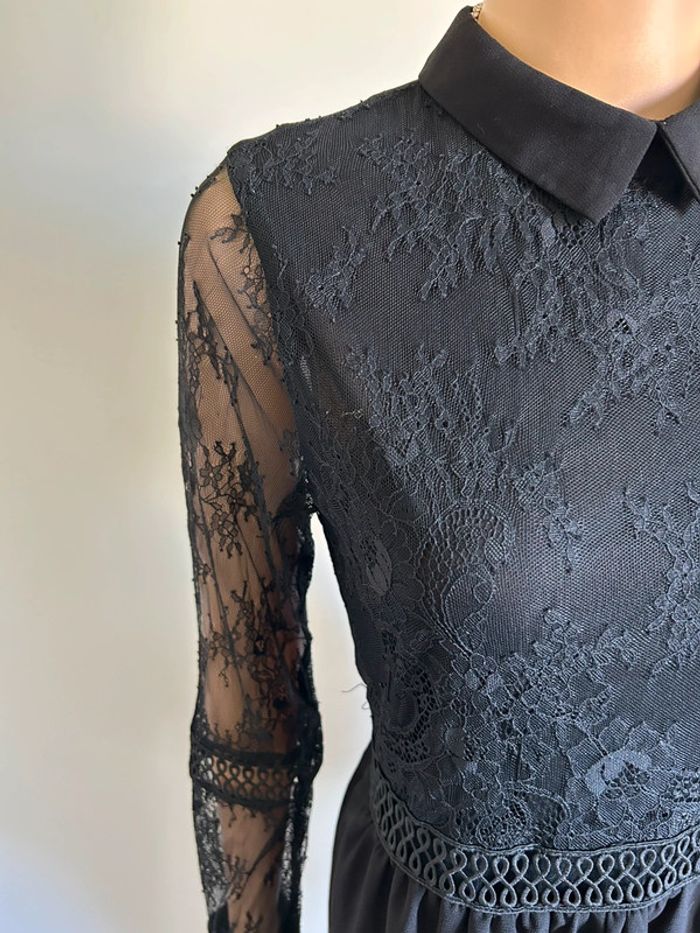 Magnifique robe noire avec dentelle, à manches longues, de marque Grace & Mila. Taille M. Jamais portée, état neuf. aisselle à aisselle 45 cms épaule à épaule 38 cms longueur manches 61 cms taille 45 cms longueur depuis épaule 88 cms 100% polyester Le prix reste négociable dans la limite du raisonnable. Un petit cadeau dans le colis 🌸