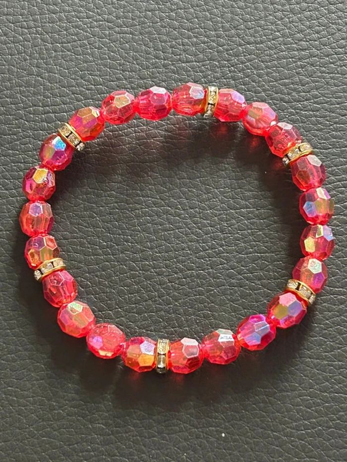 Joli bracelet rouge et doré en perles. Taille unique. Jamais porté, état neuf.