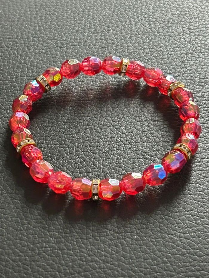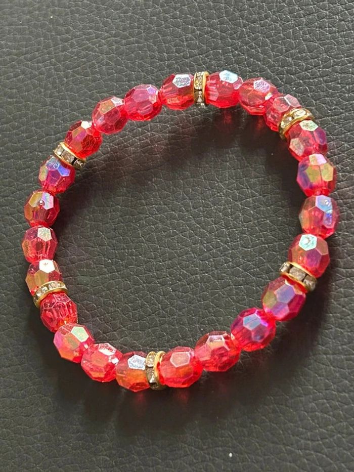 Bracelet rouge et doré en perles taille unique jamais porté - photo numéro 1