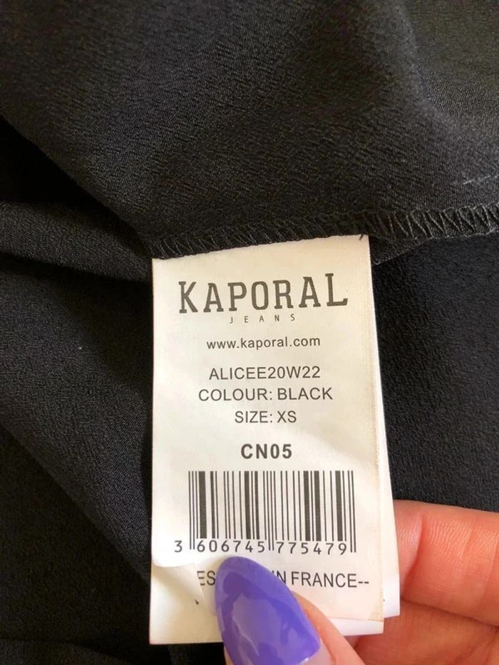 Jolie robe noire avec manches 3/4, de marque Kaporal.