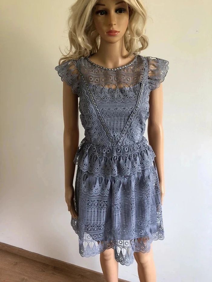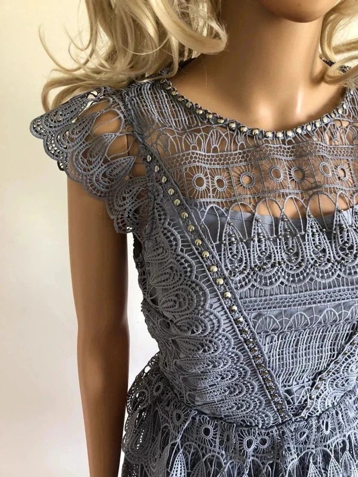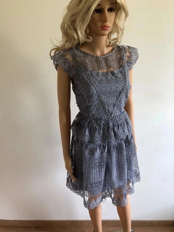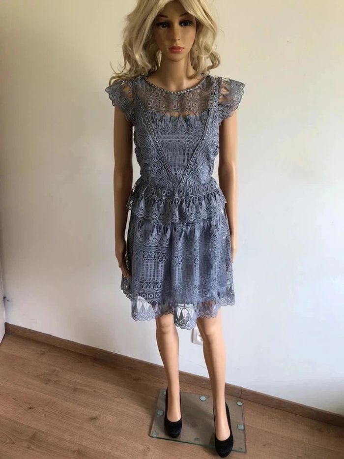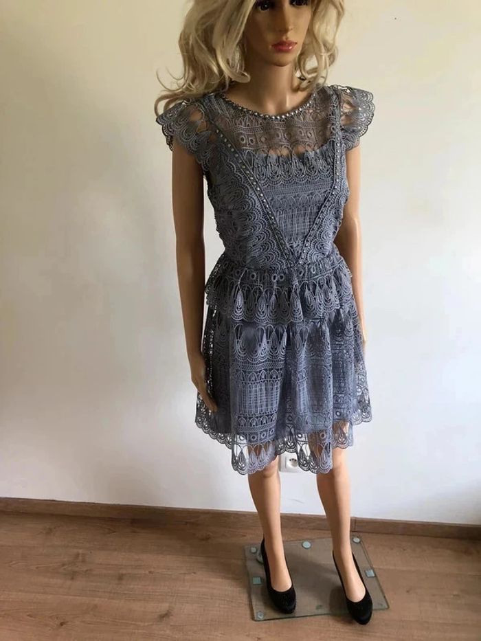 Robe grise bleutée neuve en dentelle Morgan taille 38 (valeur 145€) taille petit - photo numéro 2