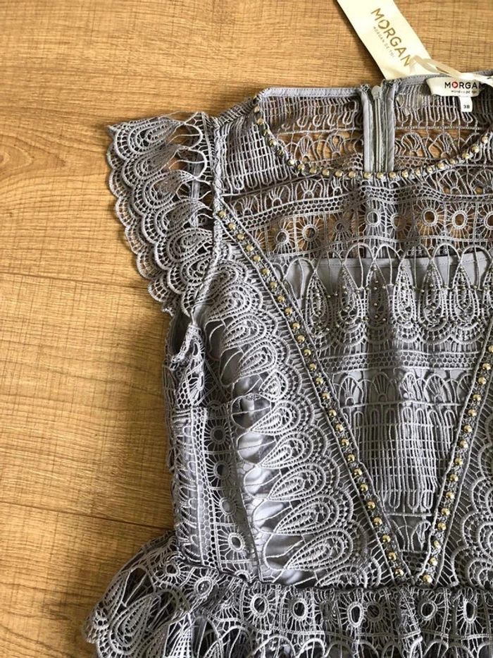 Robe grise bleutée neuve en dentelle Morgan taille 38 (valeur 145€) taille petit - photo numéro 3