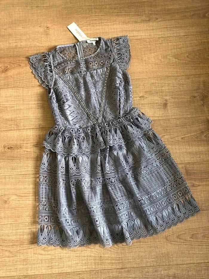 Robe grise bleutée neuve en dentelle Morgan taille 38 (valeur 145€) taille petit - photo numéro 1