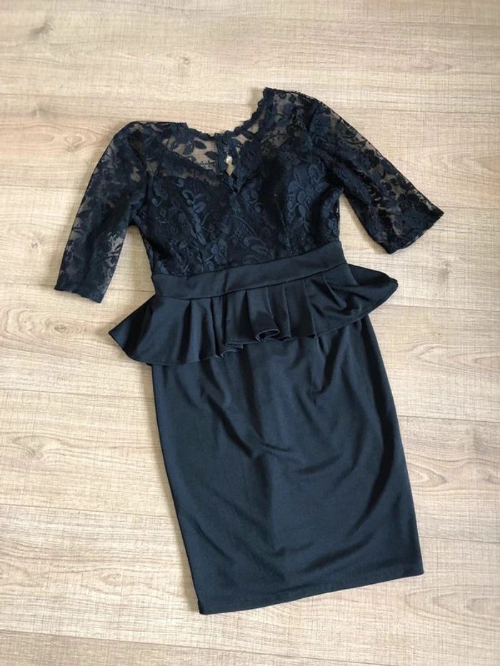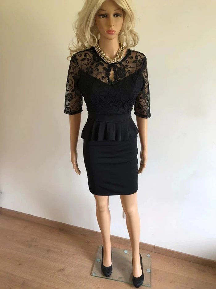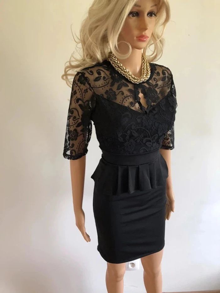Robe noire à manches courtes avec dentelle taille S jamais portée - photo numéro 1