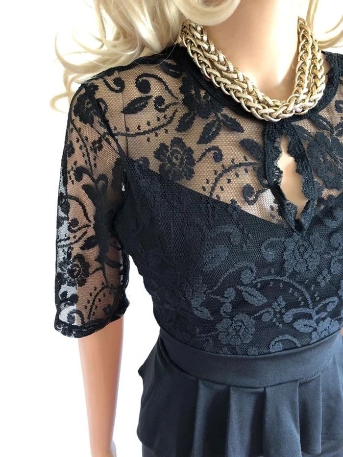 Robe noire à manches courtes avec dentelle taille S jamais portée - photo numéro 3
