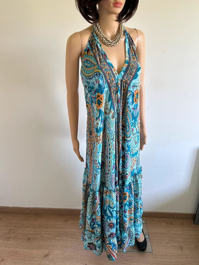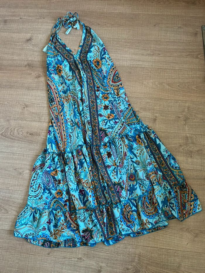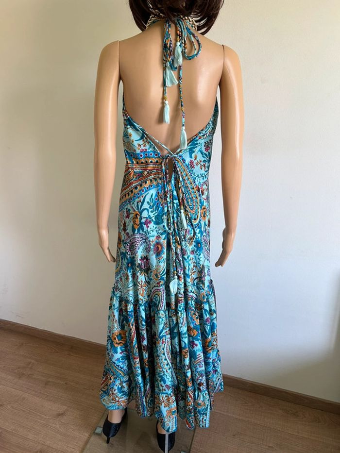 Magnifique robe longue imprimée en soie, avec dos nu, de marque Trebol. Taille S. Elle est neuve avec étiquette. 70% soie et 30% polyester Le prix reste négociable dans la limite du raisonnable. Un petit cadeau dans le colis 🌸