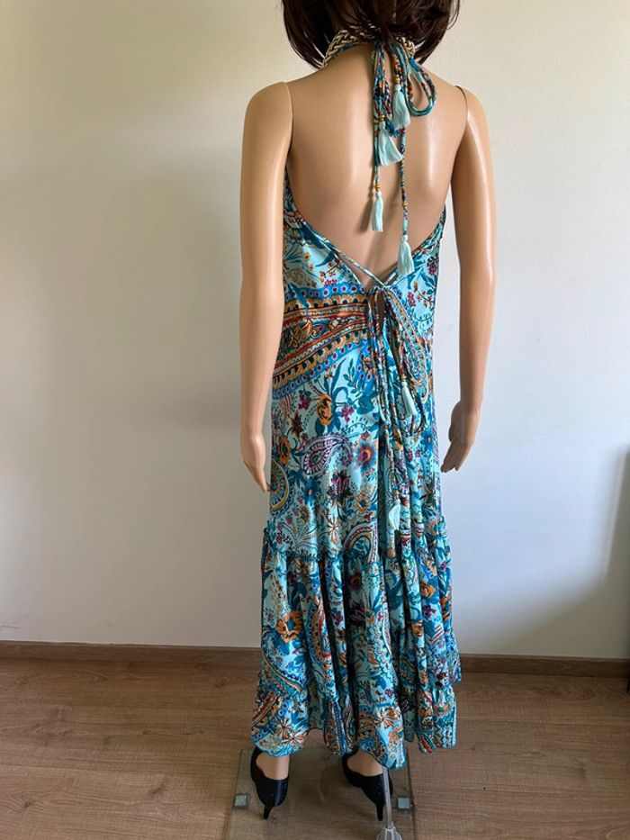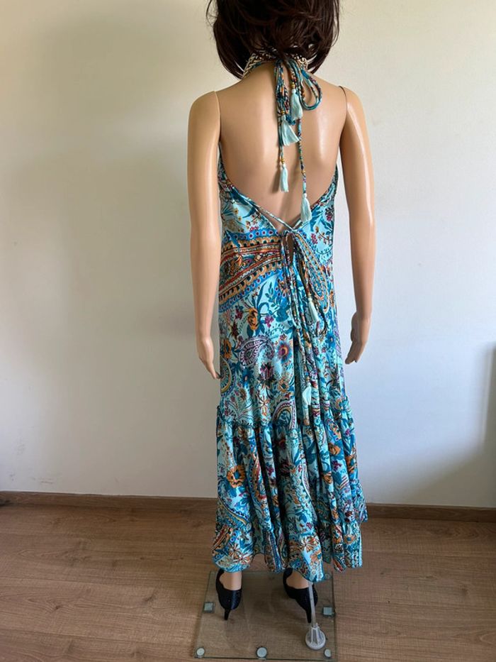 Robe longue neuve en soie avec dos nu Trebol taille S - photo numéro 12