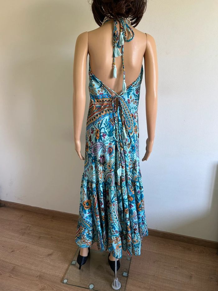 Robe longue neuve en soie avec dos nu Trebol taille S - photo numéro 1