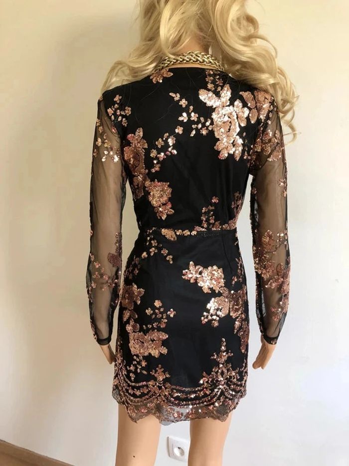 Robe noire de soirée avec sequins dorés taille S jamais portée - photo numéro 14