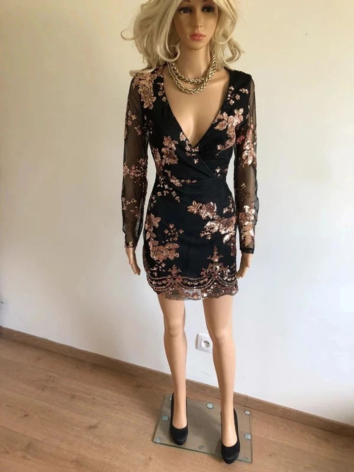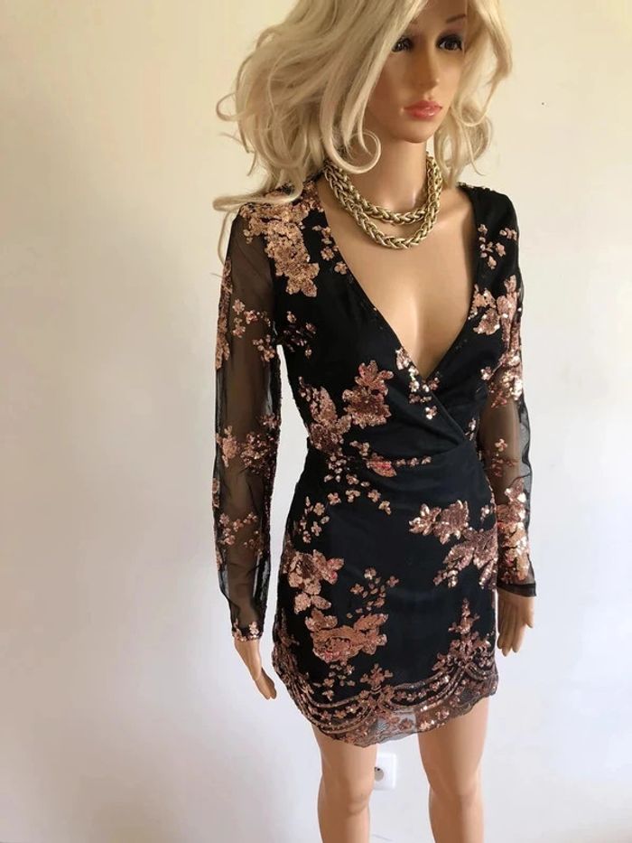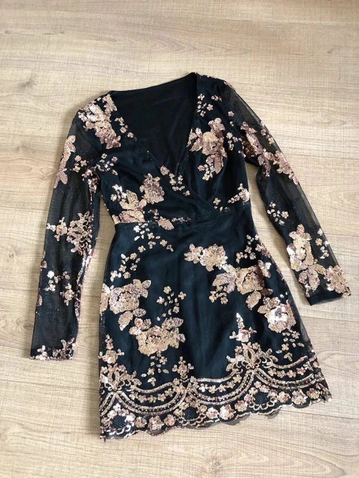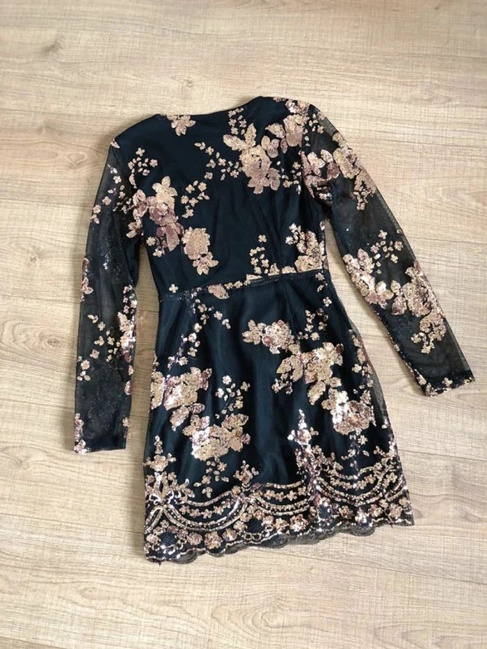 Robe noire de soirée avec sequins dorés taille S jamais portée - photo numéro 1