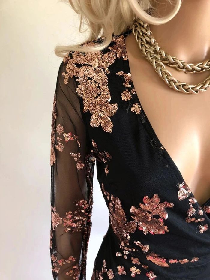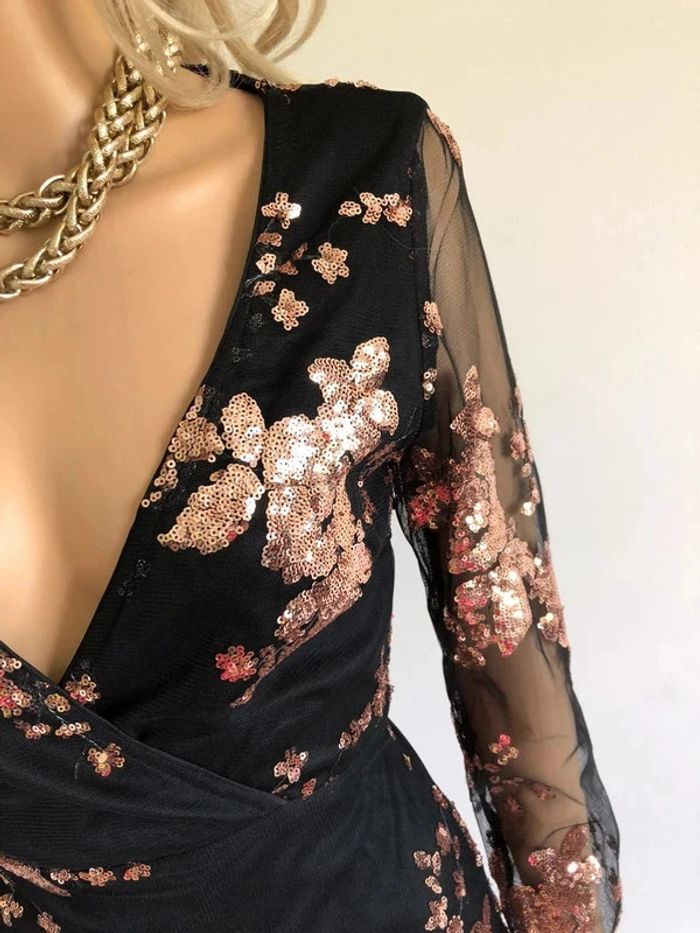 Robe noire de soirée avec sequins dorés taille S jamais portée - photo numéro 15