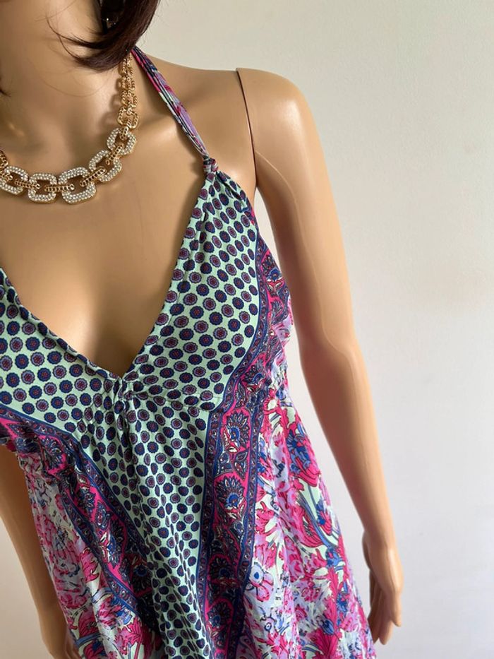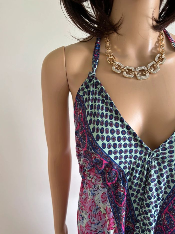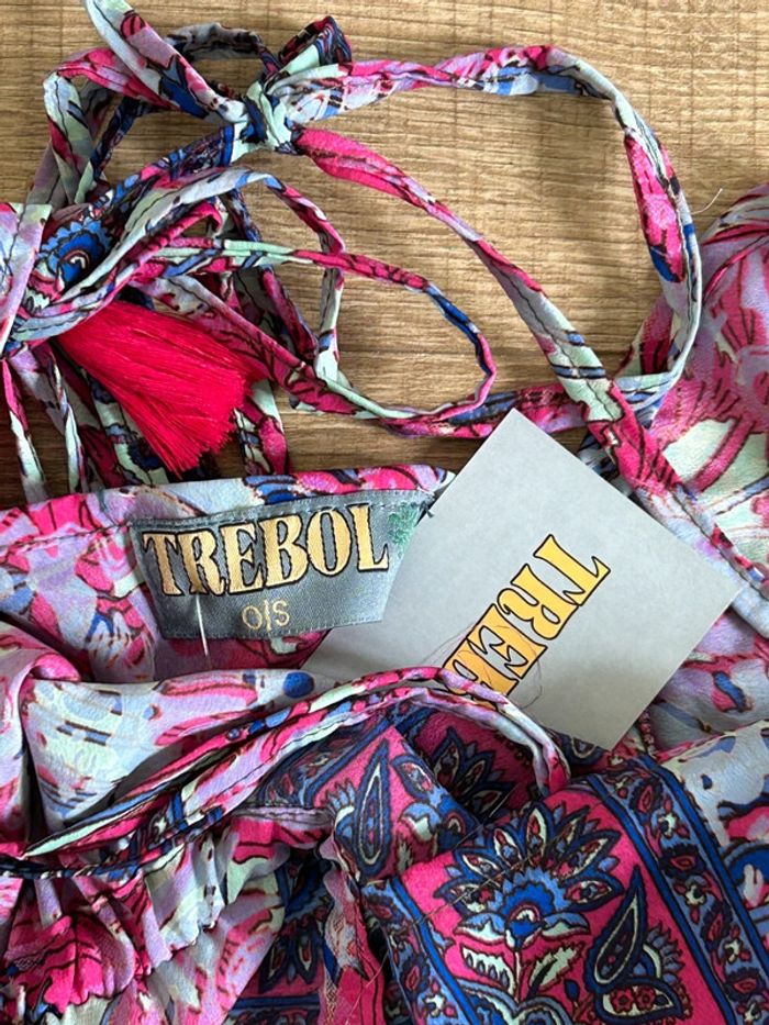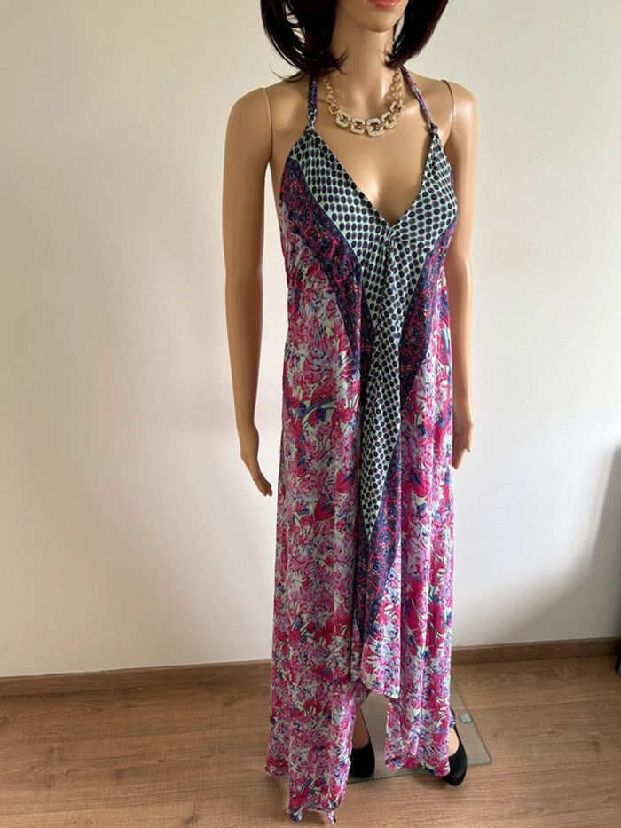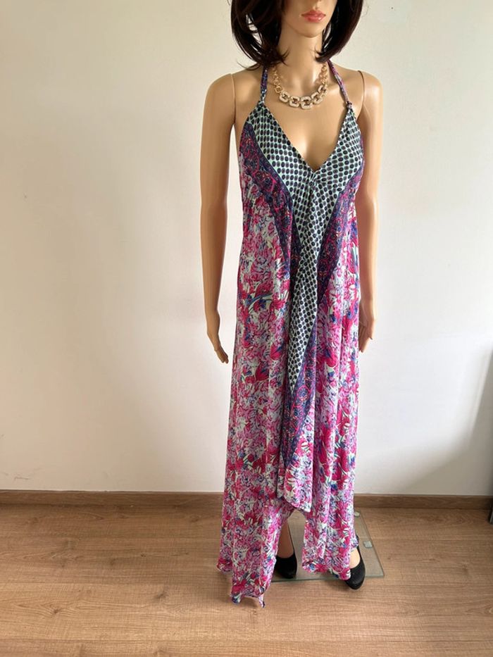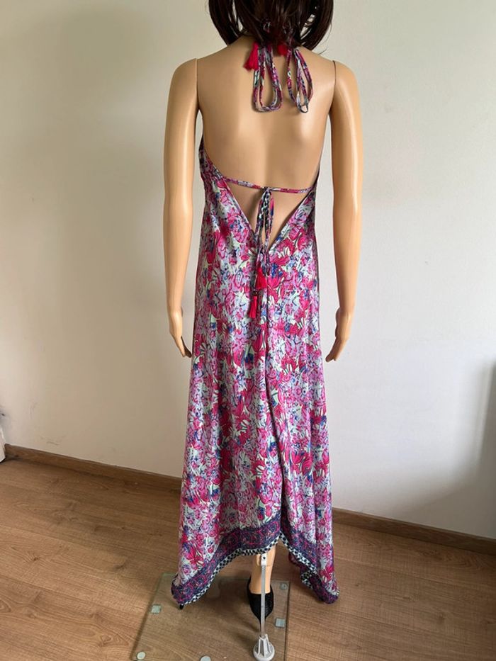 Magnifique robe longue imprimée en soie, avec dos nu, de marque Trebol. Taille S. Elle est neuve avec étiquette. 70% soie et 30% polyester Le prix reste négociable dans la limite du raisonnable. Un petit cadeau dans le colis 🌸