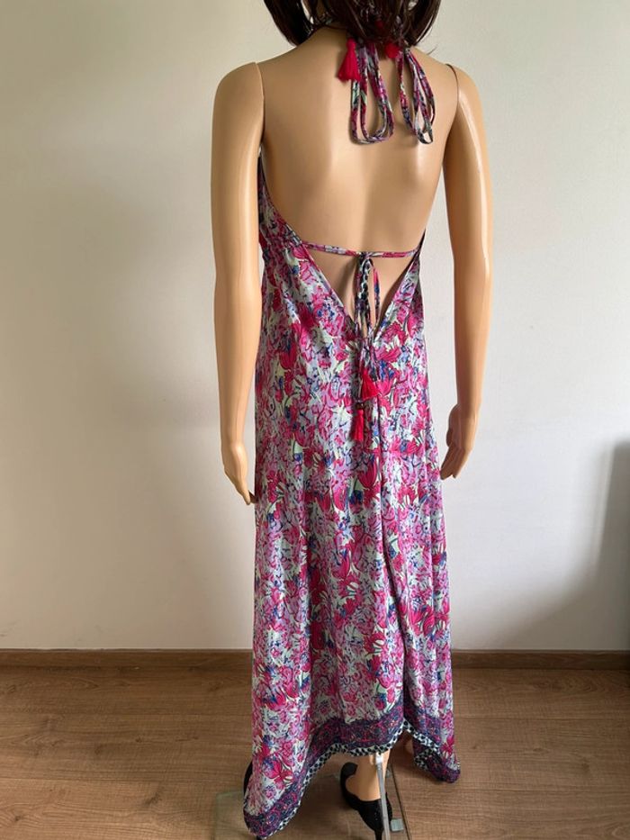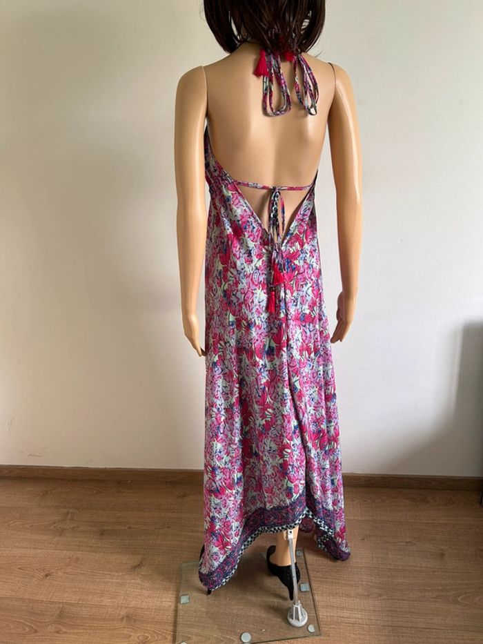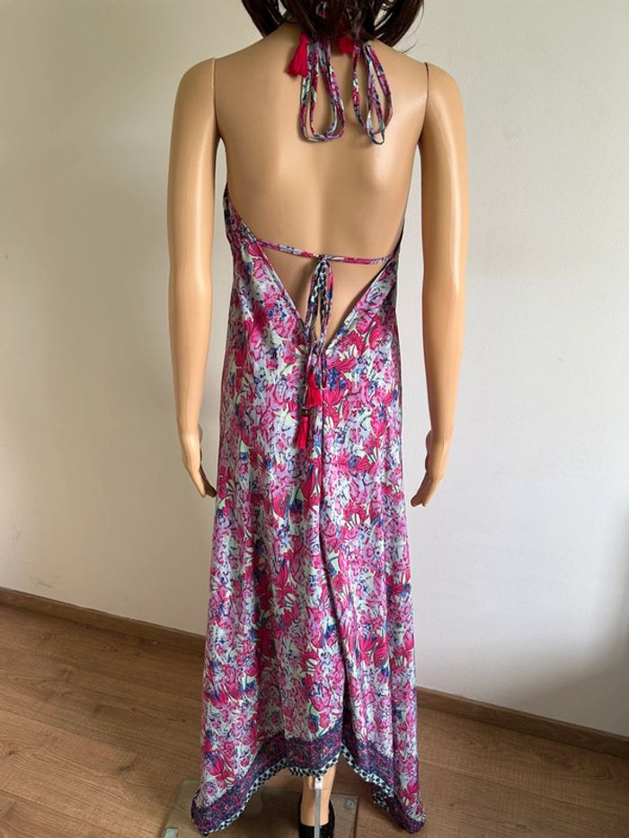 Robe longue neuve en soie avec dos nu Trebol taille S - photo numéro 12