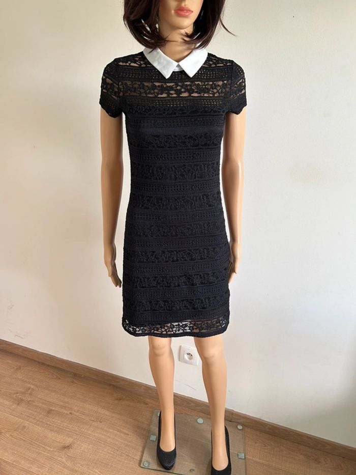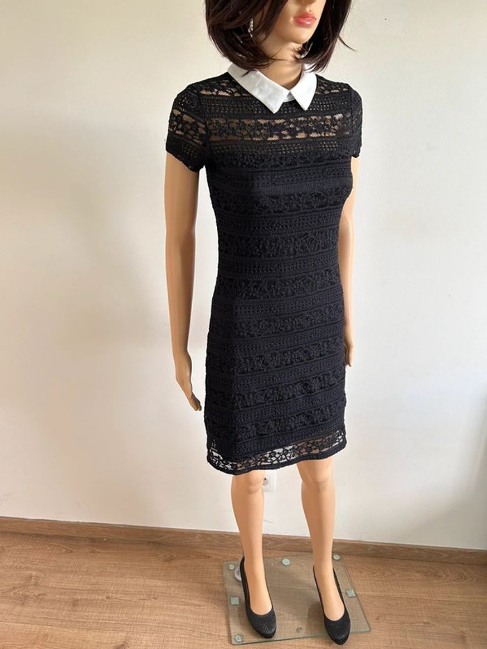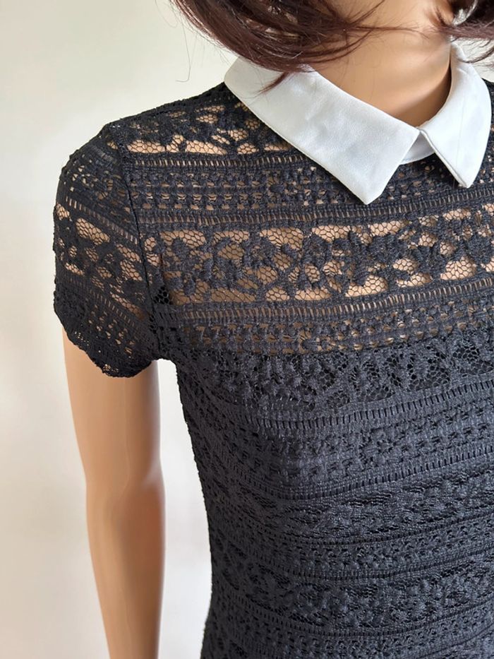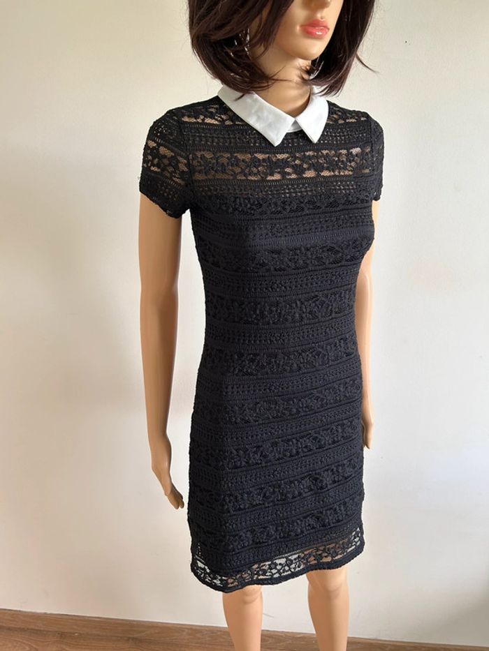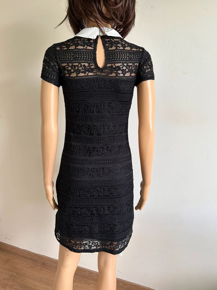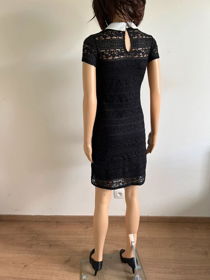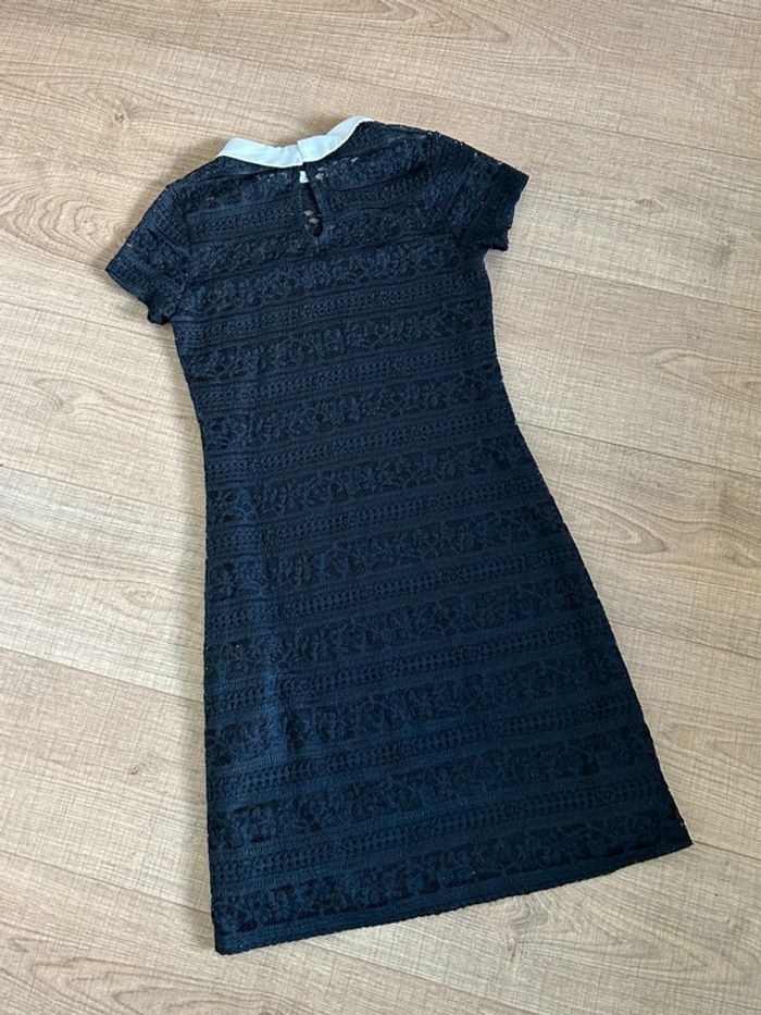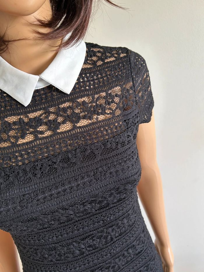 Jolie robe noire en dentelle à manches courtes, avec col Claudine blanc, de marque Morgan. Taille 36. Jamais portée, état neuf. aisselle à aisselle 39 cms à 44 cms épaule à épaule 33 cms à 38 cms taille 35 cms à 41 cms longueur depuis épaule 86 cms Le tissu est extensible 98% polyester et 2% elasthanne Le prix reste négociable dans la limite du raisonnable. Un petit cadeau dans le colis 🌸 (Boîte 37)