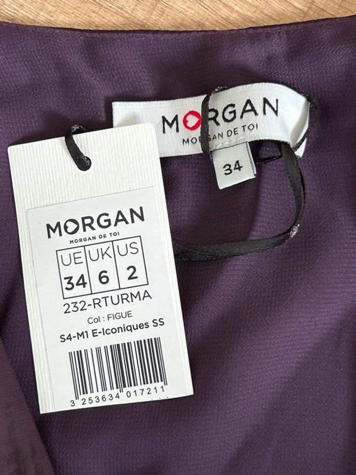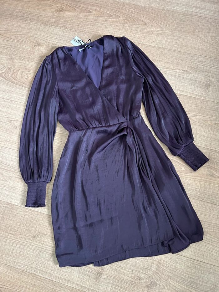 Robe prune satinée neuve à manches longues Morgan taille 34 - photo numéro 2