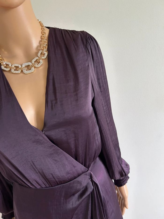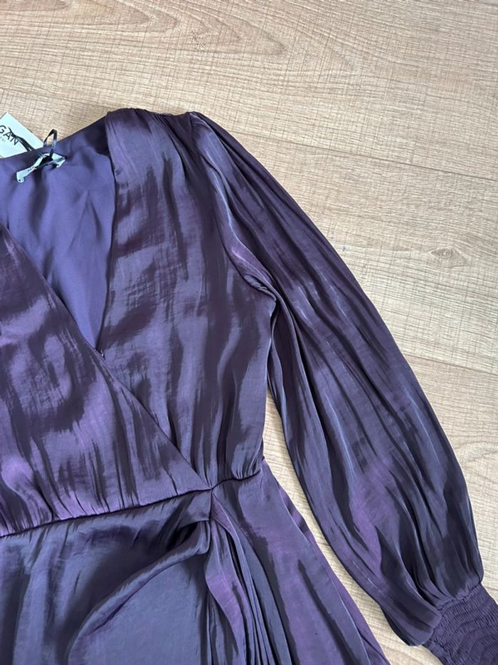 Robe prune satinée neuve à manches longues Morgan taille 34 - photo numéro 7