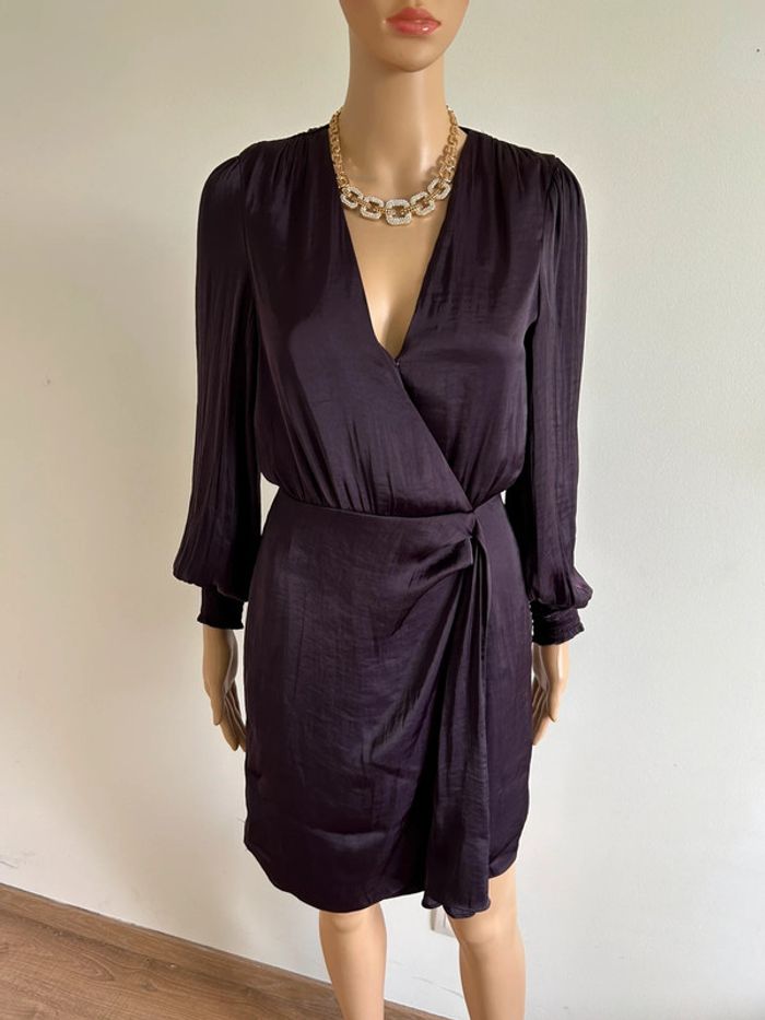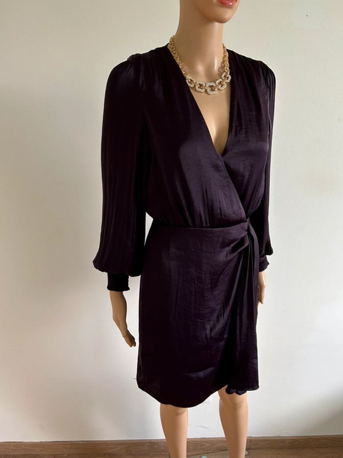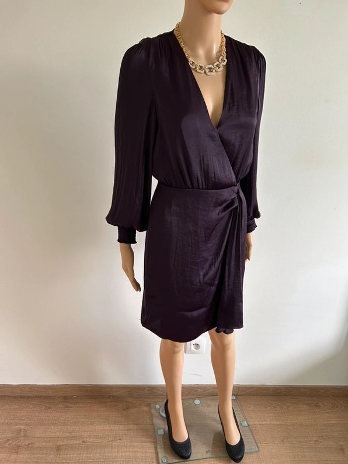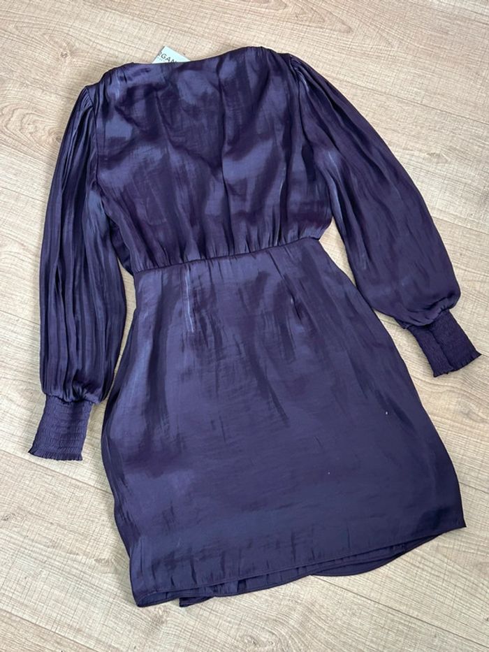 Robe prune satinée neuve à manches longues Morgan taille 34 - photo numéro 5