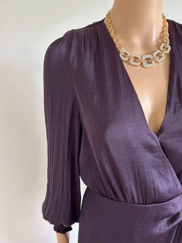 Robe prune satinée neuve à manches longues Morgan taille 34 - photo numéro 4