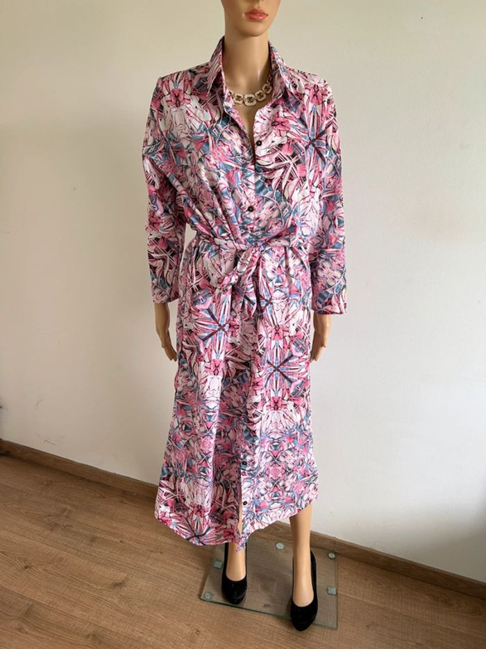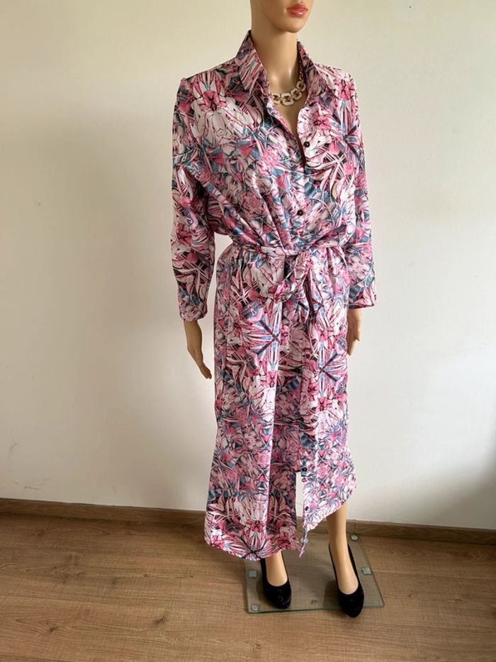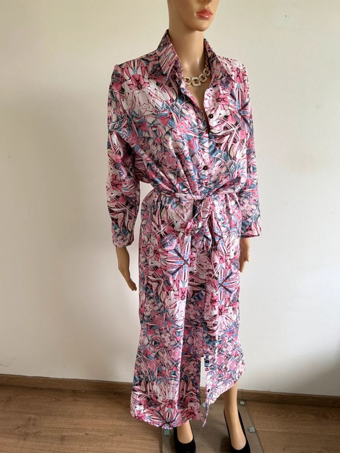 Magnifique robe longue imprimée en soie, à manches longues, de marque Trebol. Taille S. Elle est neuve avec étiquette. aisselle à aisselle 56 cms épaule à épaule 46 cms longueur manches 51 cms taille 55 cms longueur depuis épaule environ 128 cms 70% soie et 30% polyester Le prix reste négociable dans la limite du raisonnable. Un petit cadeau dans le colis 🌸