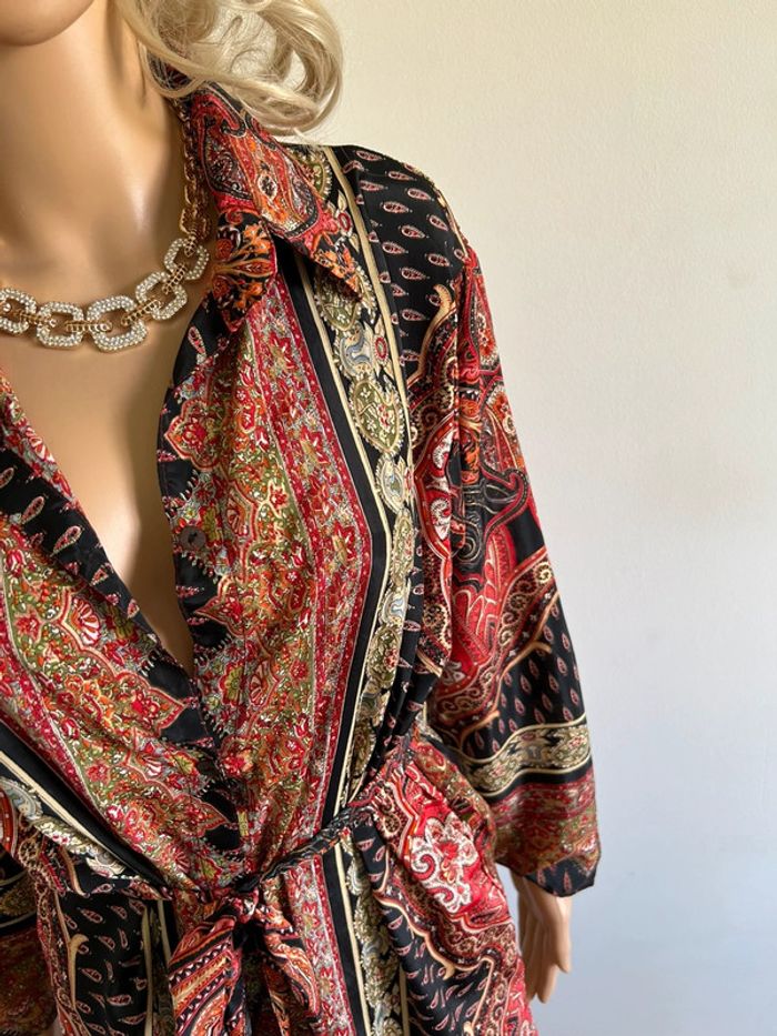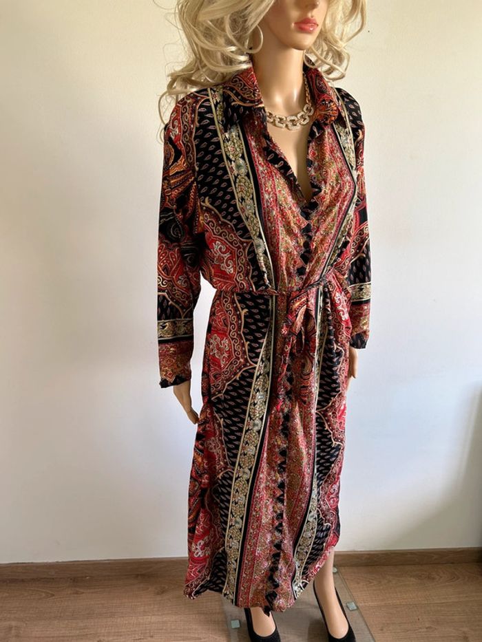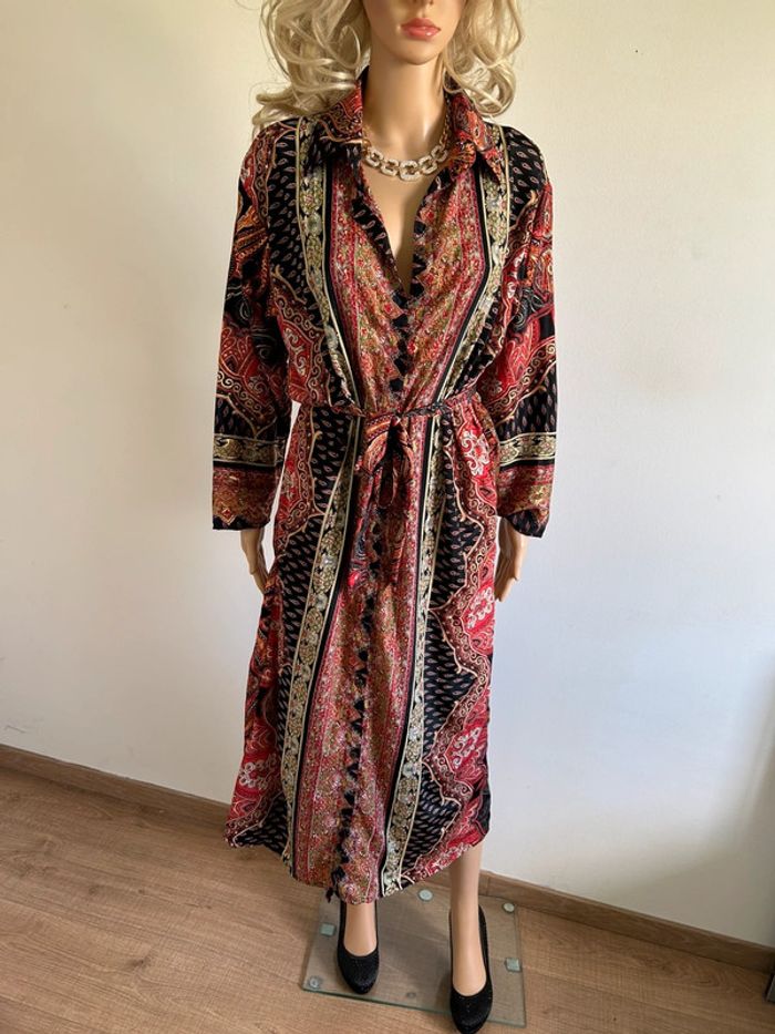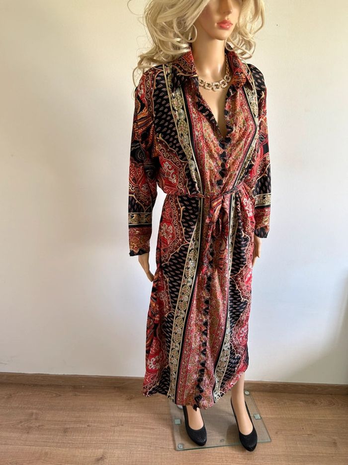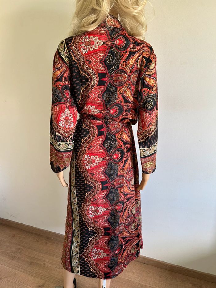 Jolie robe longue en soie, à manches longues, de marque Trebol. Taille S. Elle est neuve avec étiquette. aisselle à aisselle 55 cms épaule à épaule 46 cms longueur manches 51 cms taille 53 cms longueur depuis épaule environ 128 cms 70% soie et 30% polyester Le prix reste négociable dans la limite du raisonnable. Un petit cadeau dans le colis 🌸