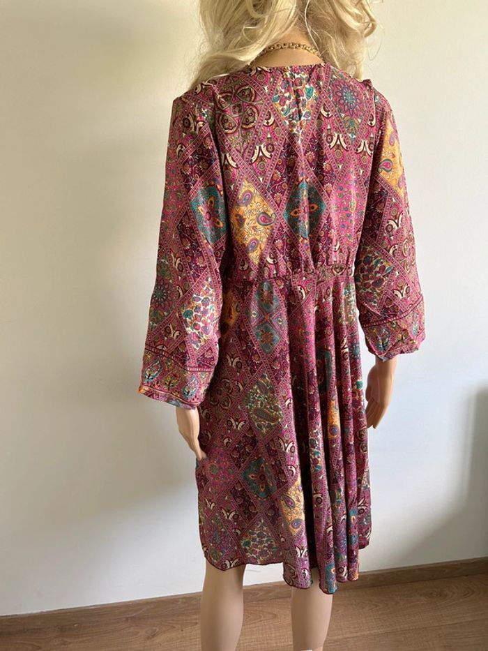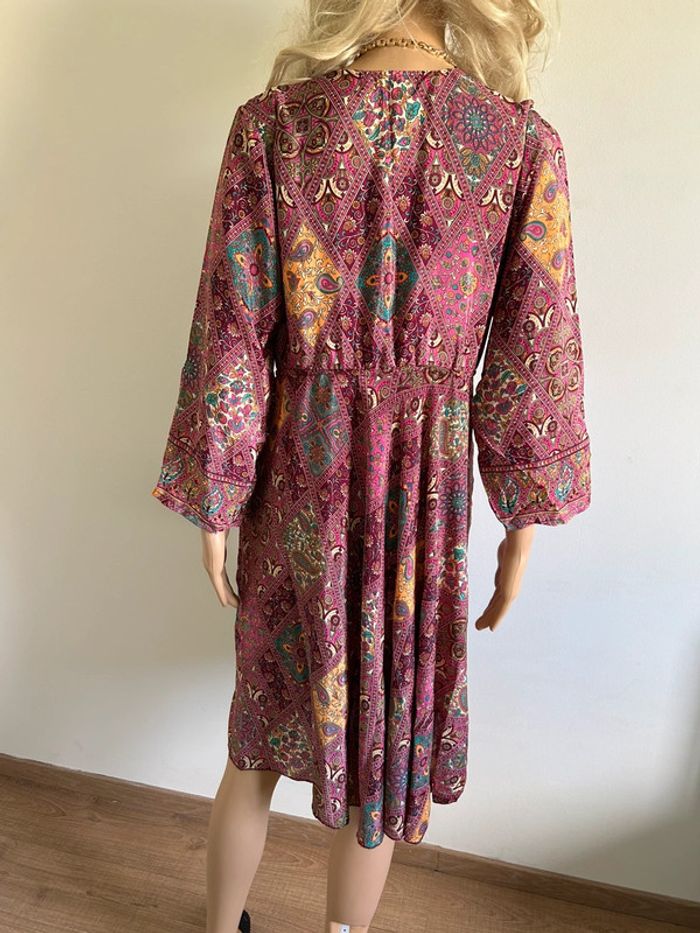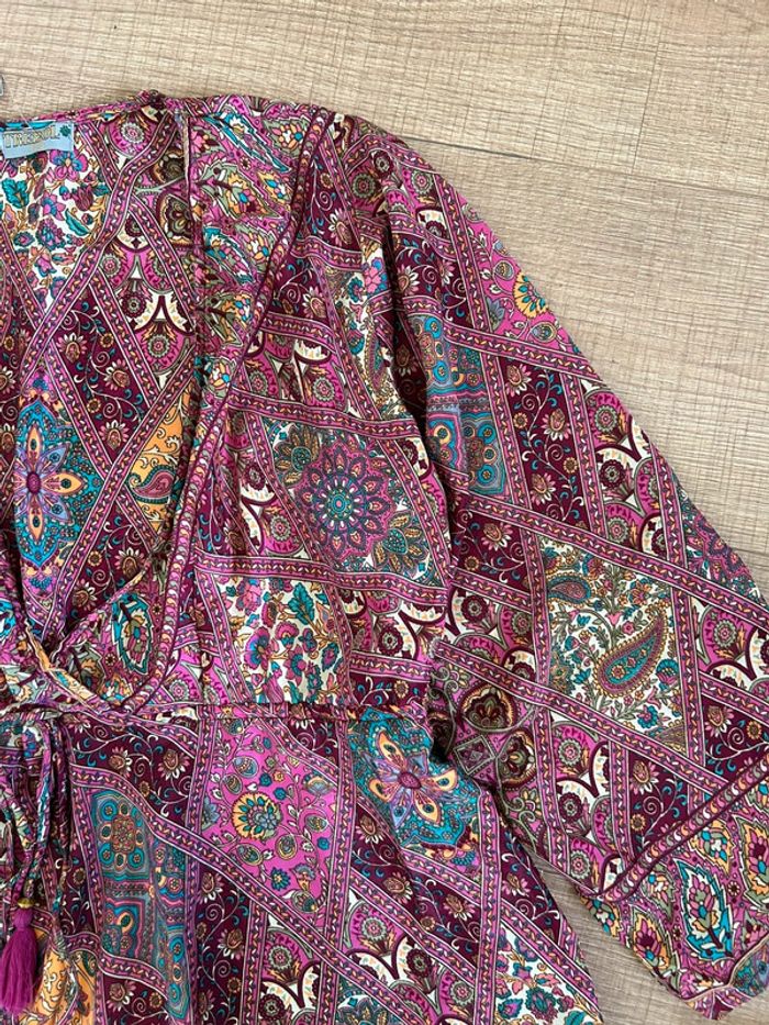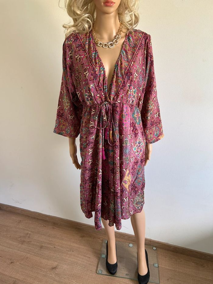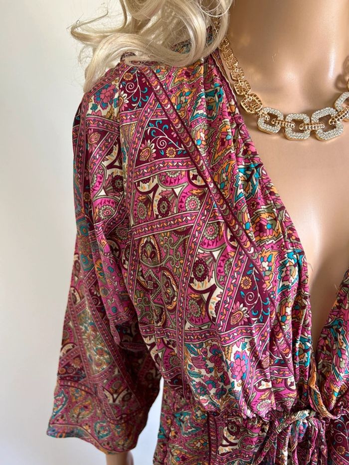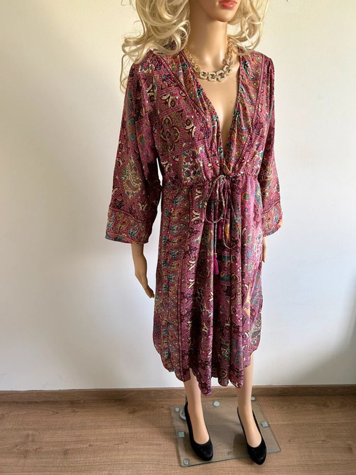Magnifique robe imprimée mi longue en soie, de marque Trebol. Taille S. Elle est neuve avec étiquette. aisselle à aisselle 54 cms épaule à épaule 38 cms longueur manches 51 cms taille 45 cms longueur depuis épaule 99 cms 70% soie et 30% polyester Le prix reste négociable dans la limite du raisonnable. Un petit cadeau dans le colis 🌸