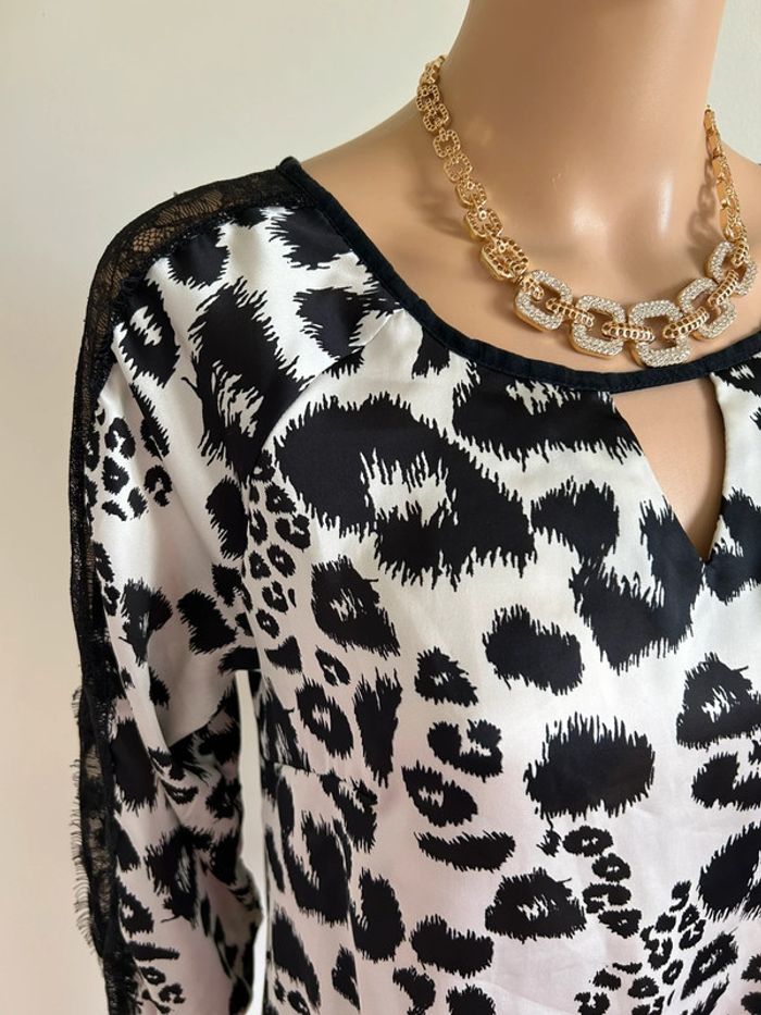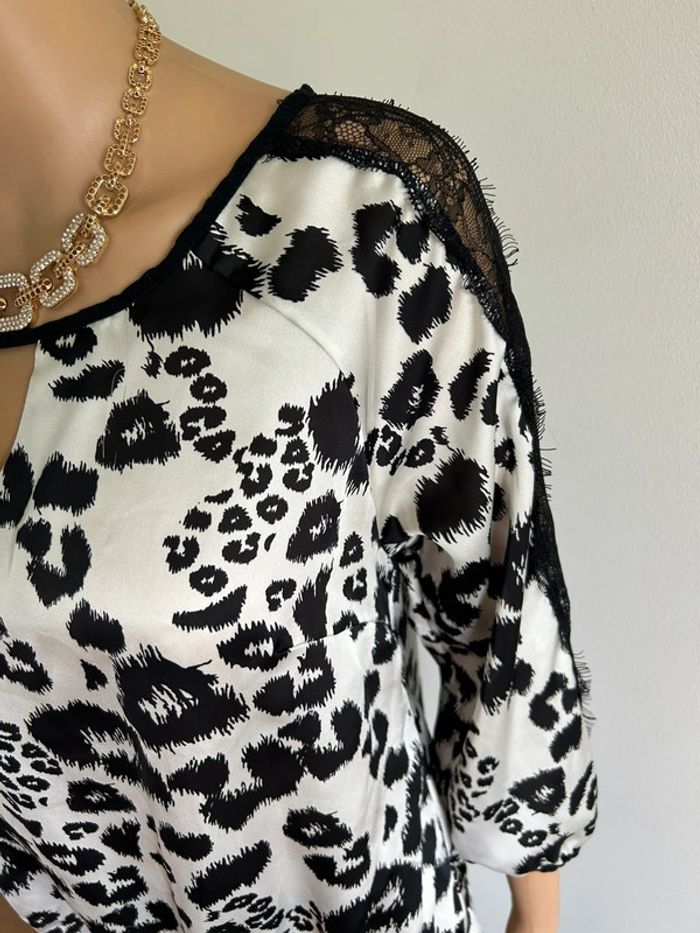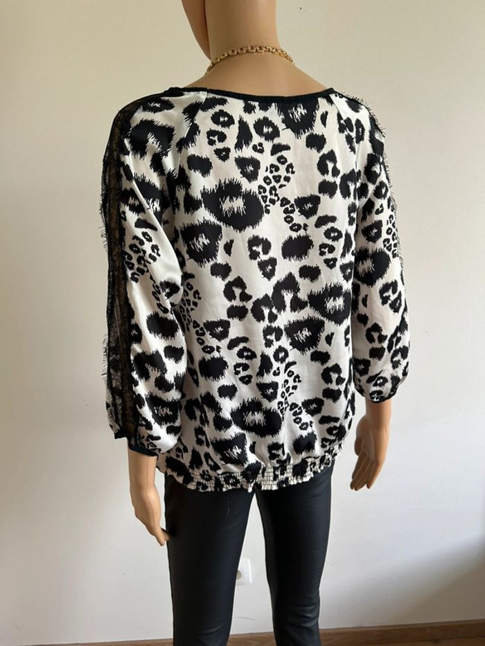 Blouse noire et écrue satinée Morgan taille 40 excellent état - photo numéro 11