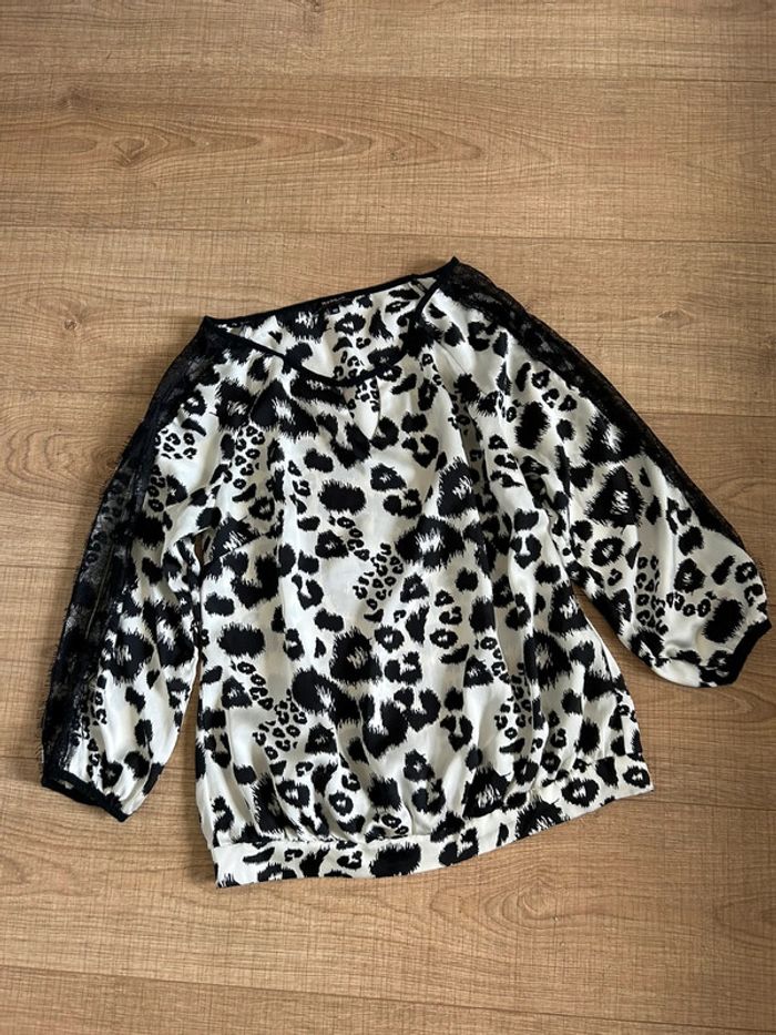 Blouse noire et écrue satinée Morgan taille 40 excellent état - photo numéro 13