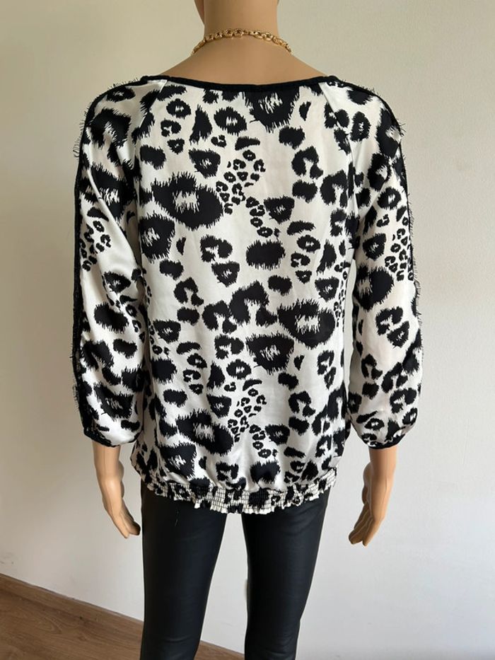 Blouse noire et écrue satinée Morgan taille 40 excellent état - photo numéro 4