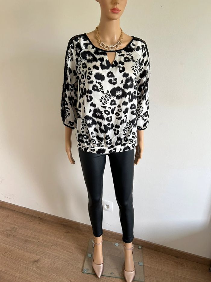 Blouse noire et écrue satinée Morgan taille 40 excellent état - photo numéro 7