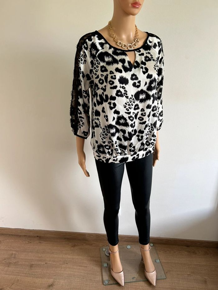 Blouse noire et écrue satinée Morgan taille 40 excellent état - photo numéro 1