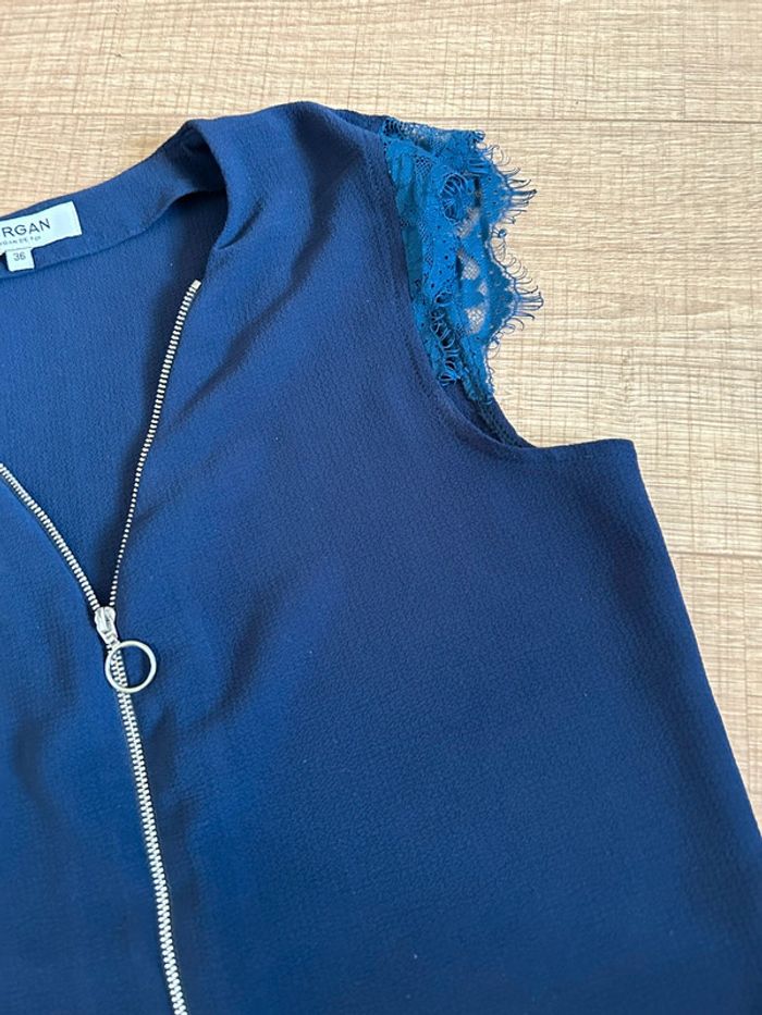 Blouse bleue marine à manches courtes Morgan taille 36 excellent état - photo numéro 14