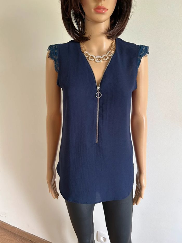 Jolie blouse bleue marine à manches courtes, avec dentelle, de marque Morgan. Taille 36. Portée une fois, en excellent état. aisselle à aisselle 44 cms épaule à épaule 35 cms taille 43 cms longueur depuis épaule 63 cms Étiquette intérieure de composition coupée Le prix reste négociable dans la limite du raisonnable. Un petit cadeau dans le colis 🌸 (Boîte 6)